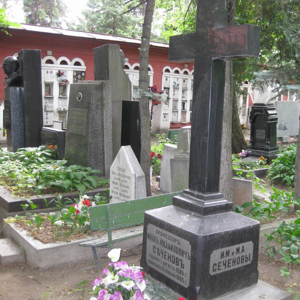- Сеченов, Иван Михайлович (1829—1905) — физиолог, почётный член Петербургской АН; перезахоронен с Ваганьковского кладбища; 4 уч. 38 ряд