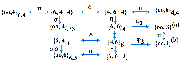 Запись Коксетера для этих соединений (где αn = {3n−1}, βn = {3n−2,4}, γn = {4,3n−2}: