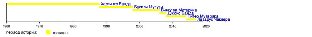 6 июля 1966 | 21 мая 1994 | Партия конгресса Малави | [1] | ||