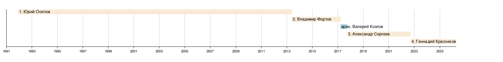 | 2 | Владимир Евгеньевич Фортов | 29 мая 2013 | 23 марта 2017 | 3 года, 10 месяцев | |