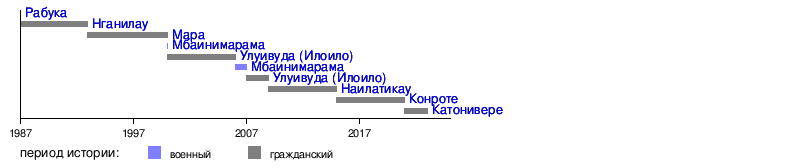 13 июля 2000 | 5 декабря 2006 | Избран Большим Советом вождей по настоянию Главы временного военного правительства Фрэнка Мбаинимарамы. В 2006 году ввиду разногласий Мбаинимарамы (главнокомандующего Вооружёнными силами) с премьер-министром Лаисениа Нгарасе временно отстранён. | |