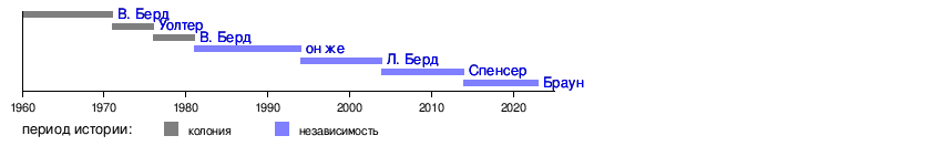 1 ноября 1981[1] | 9 марта 1994 | Лейбористская партия Антигуа и Барбуды[2] | 1984 1989 | |