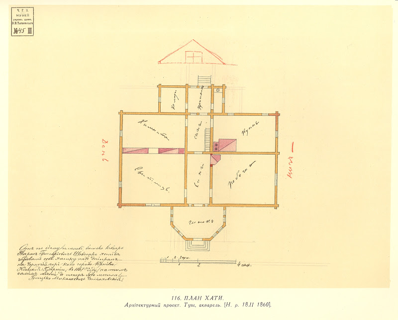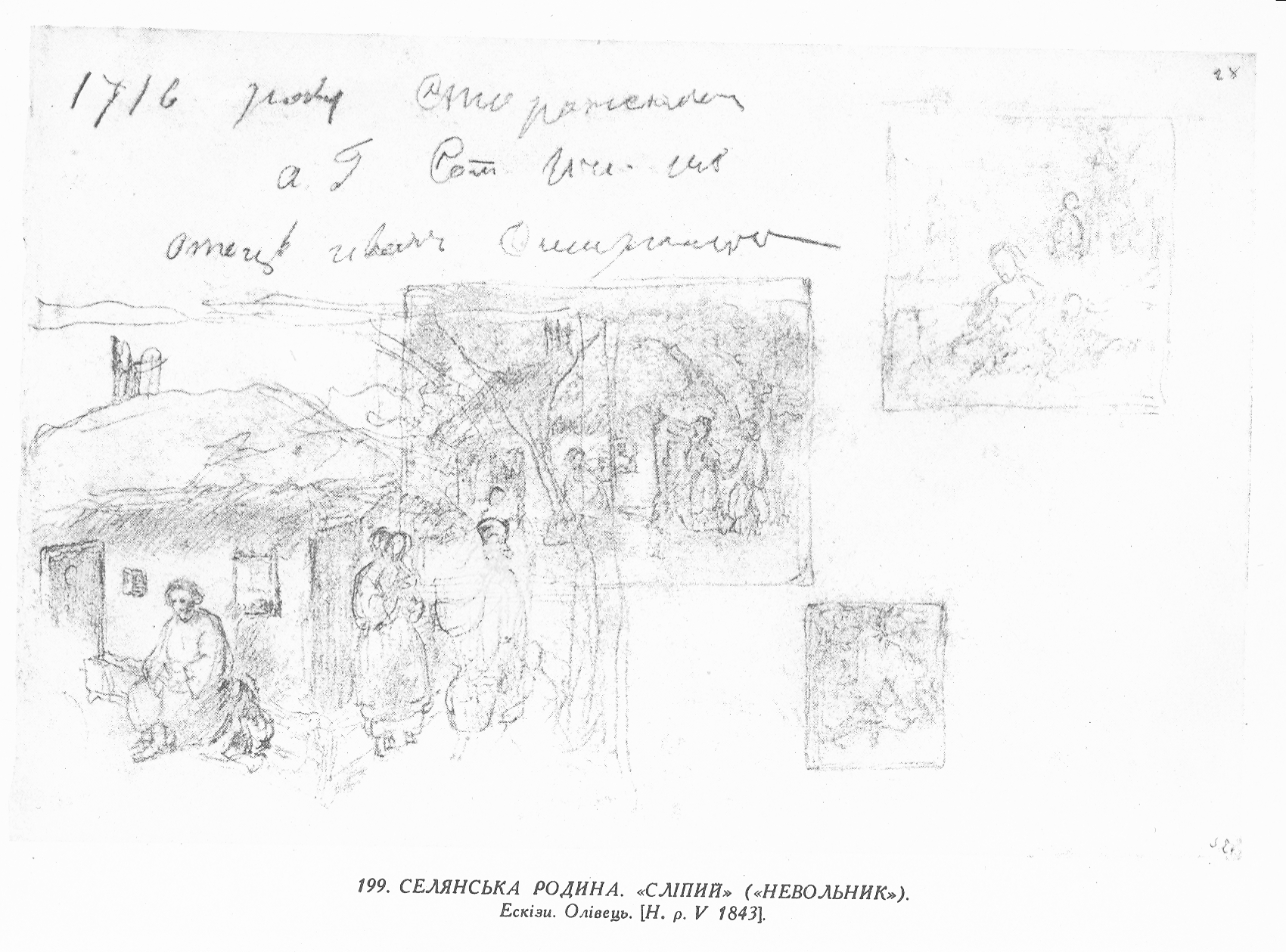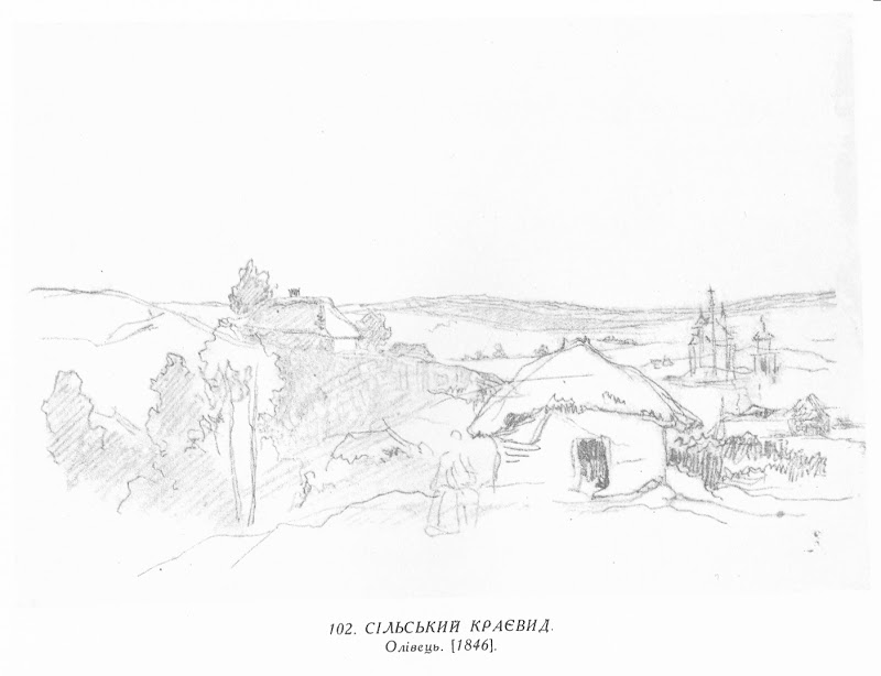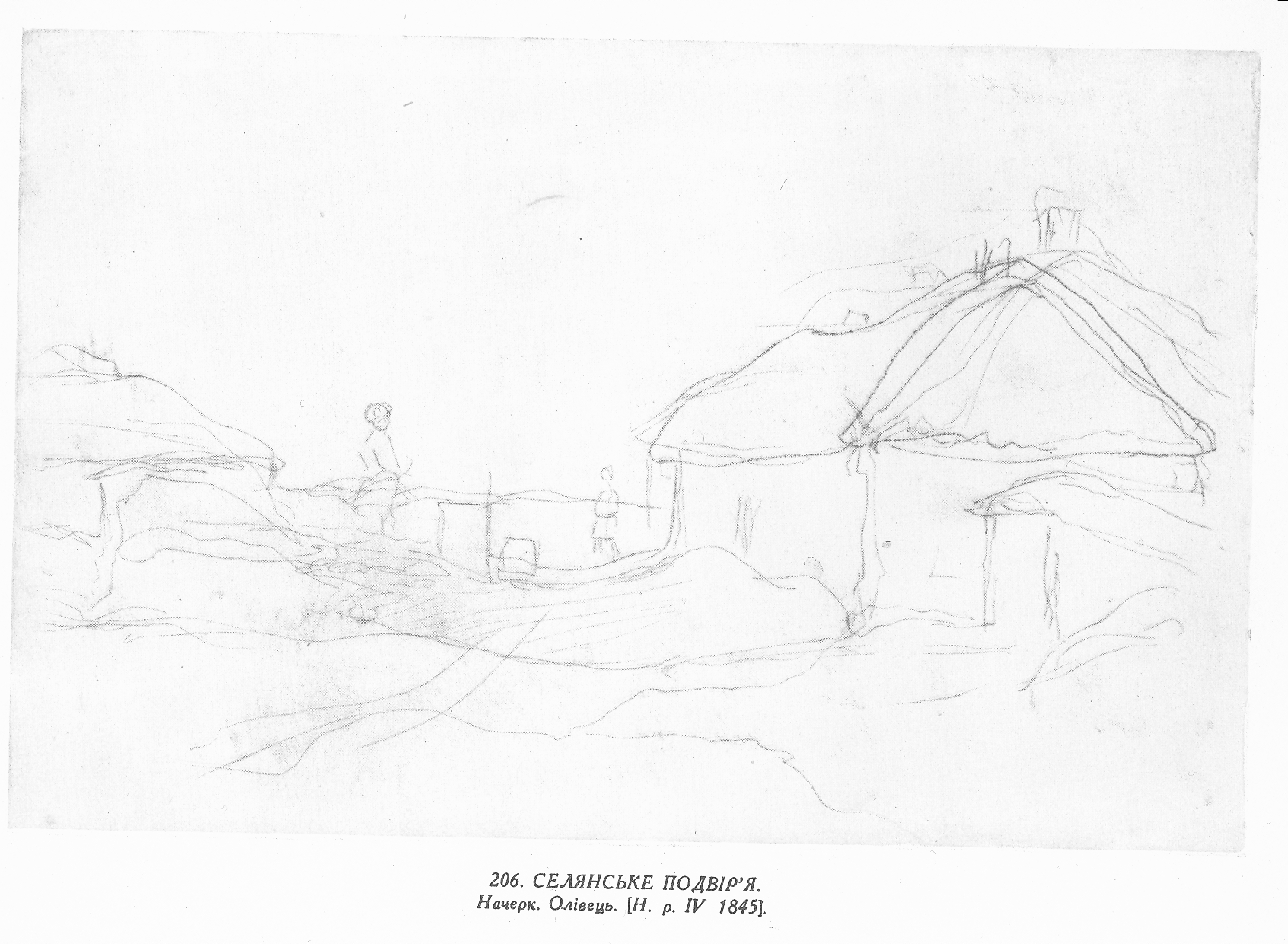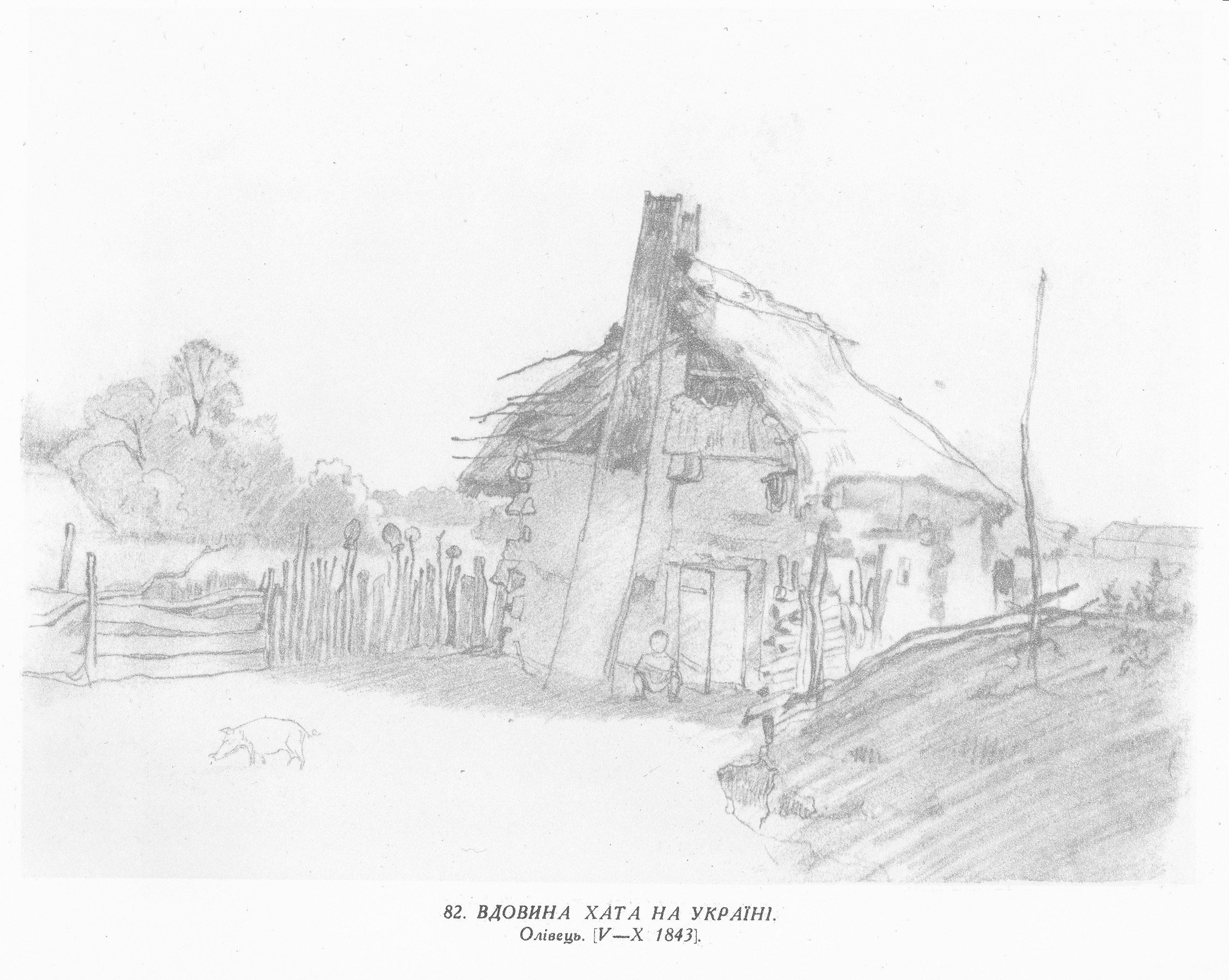 | Хата родителей Т. Г. Шевченко. | Бумага, карандаш | 17,7×26,7 | 1843 |