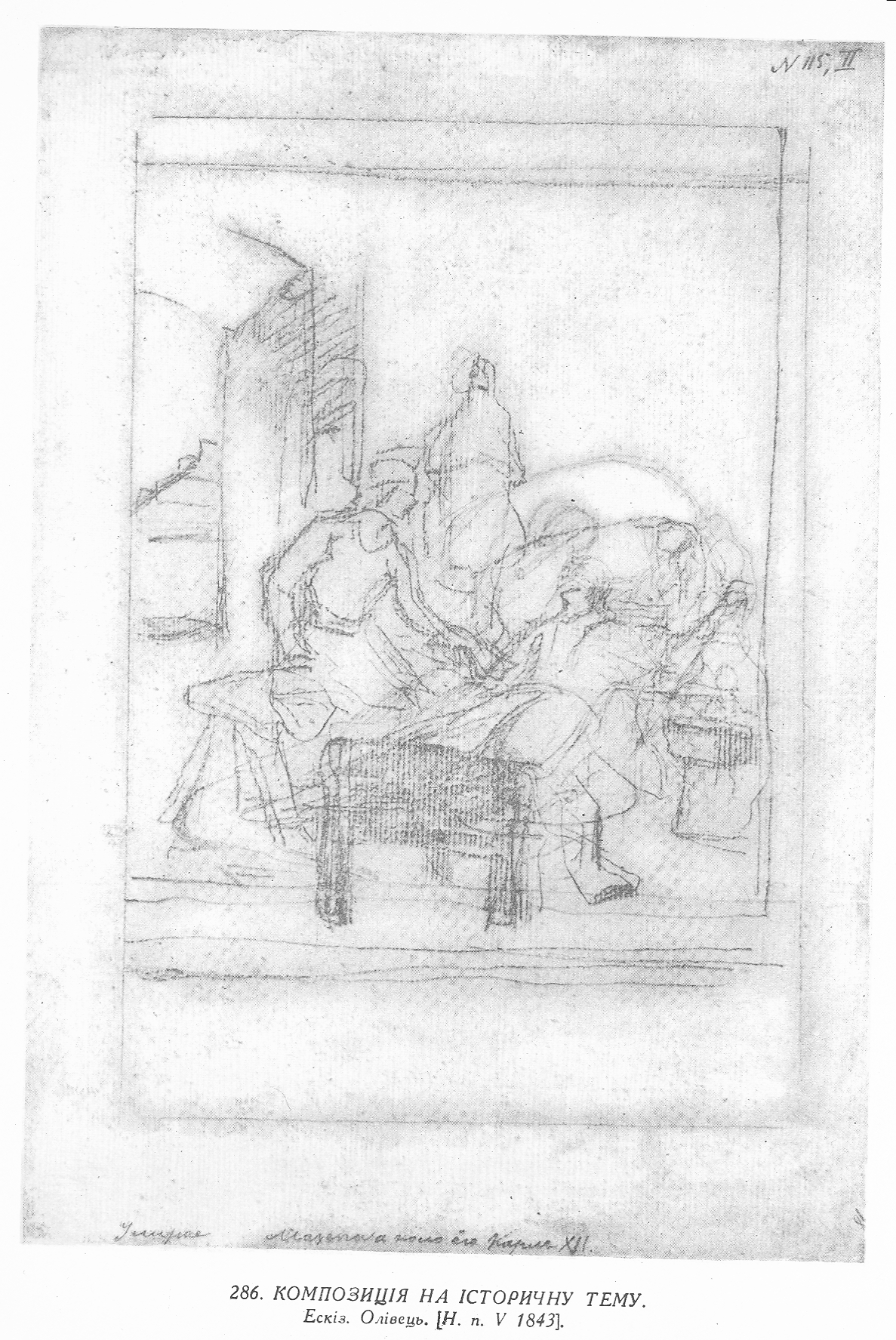 | Эскизы к неизвестной картине на историческую тему. | — | — | февраль 1847 |