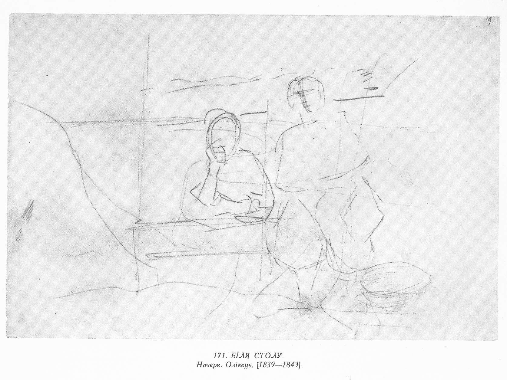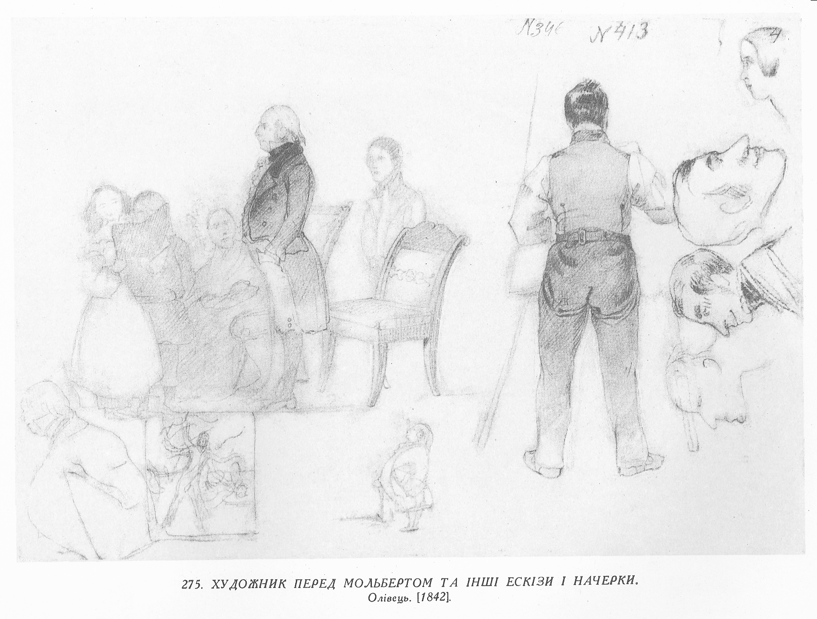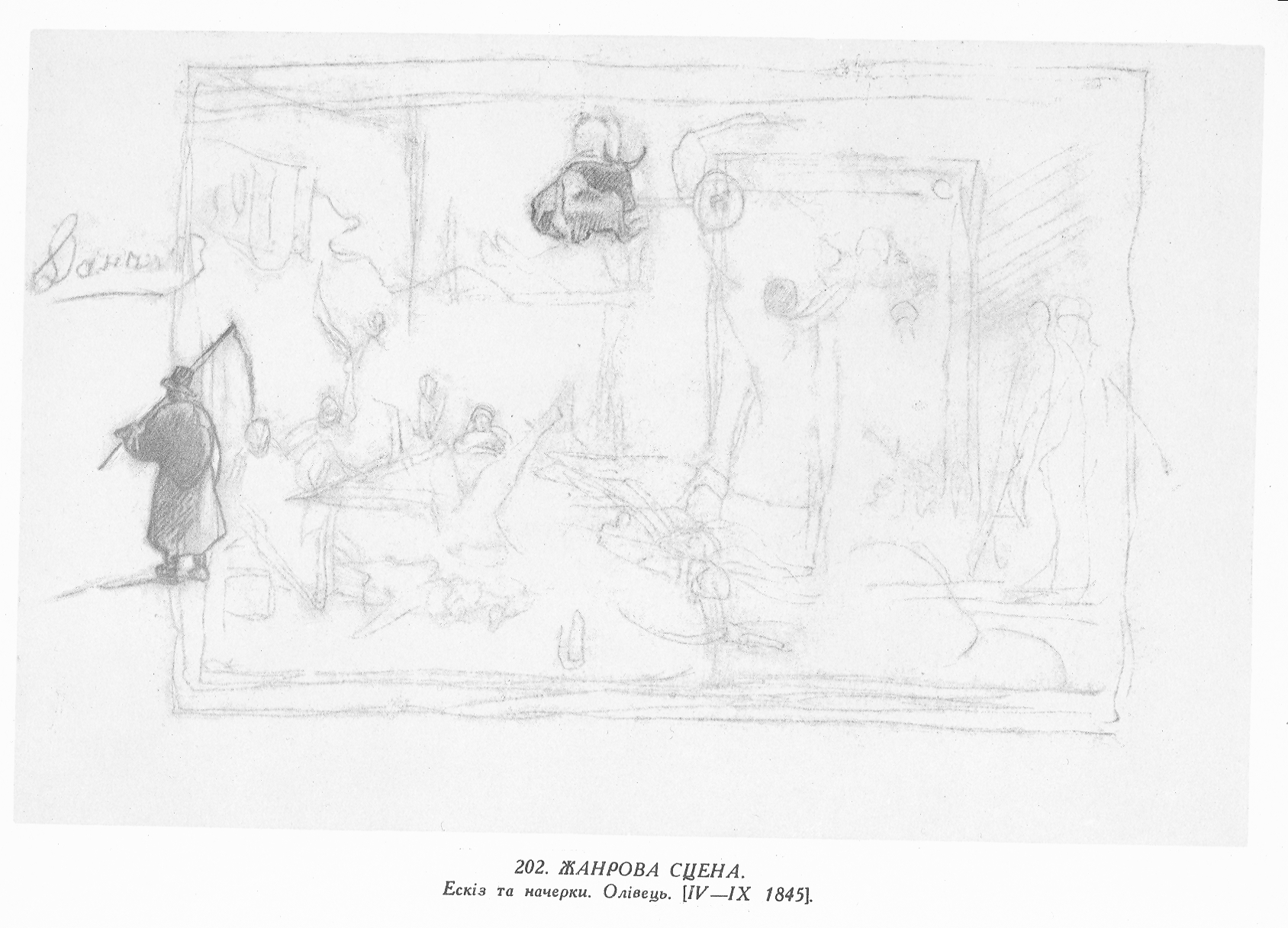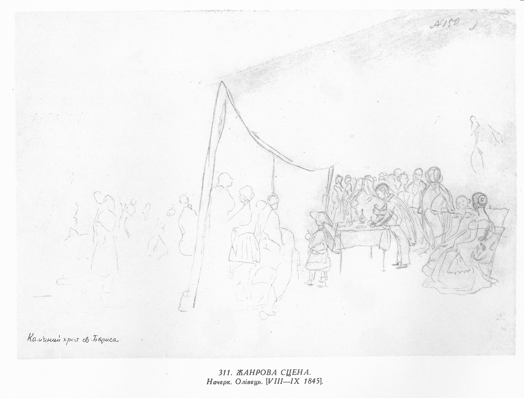 | Возле шинка в селе. | Бумага, карандаш | 26,5×36 | 1836—1838 |