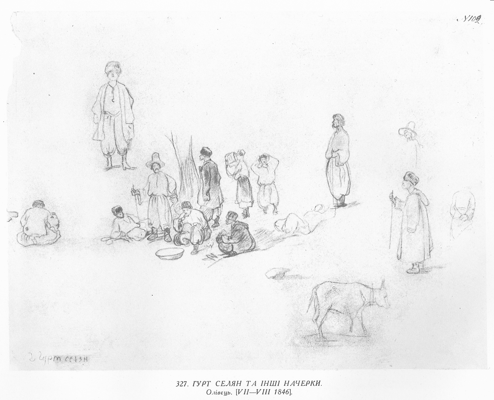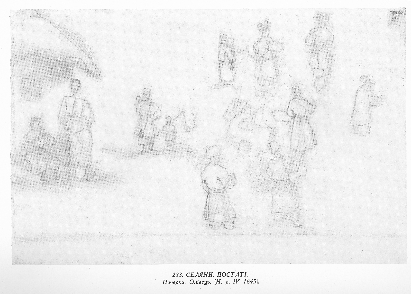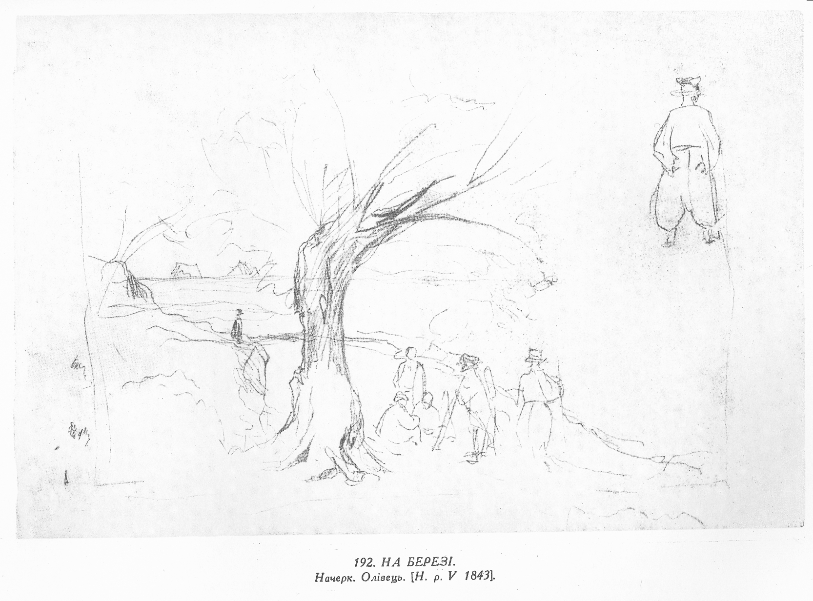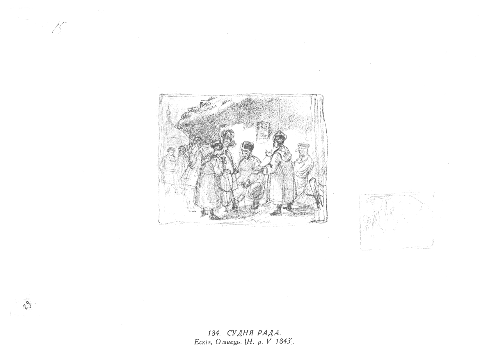 | Возле шинка в селе. | Бумага, карандаш | 26,5×36 | 1836—1838 |