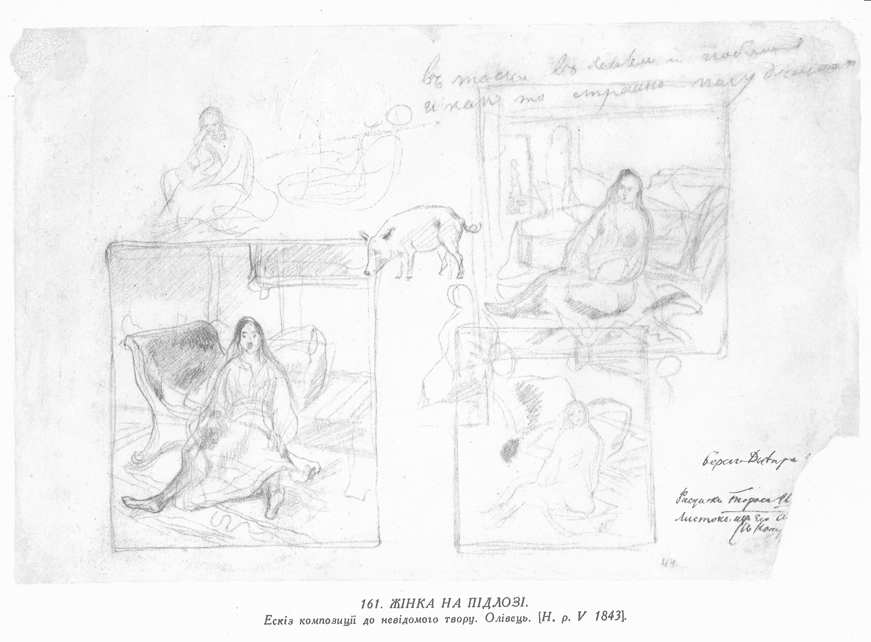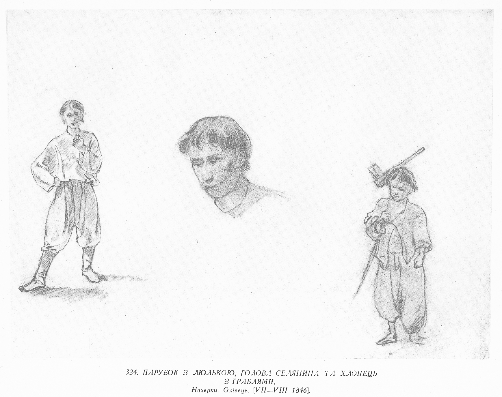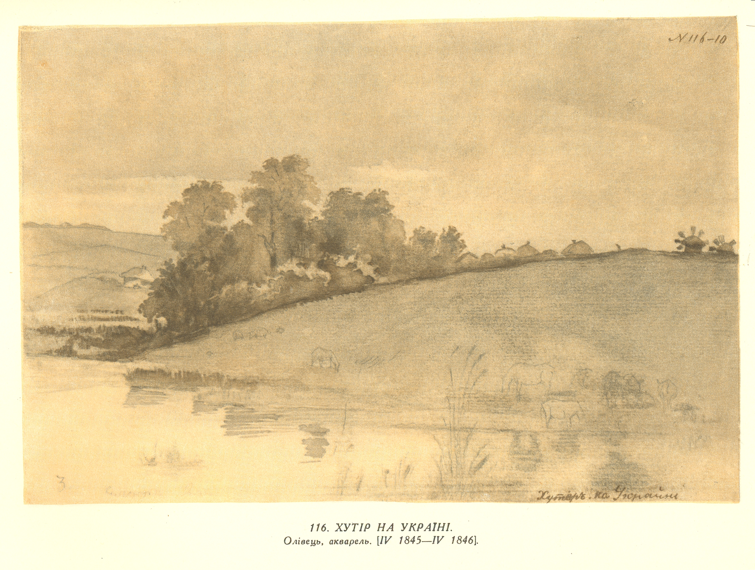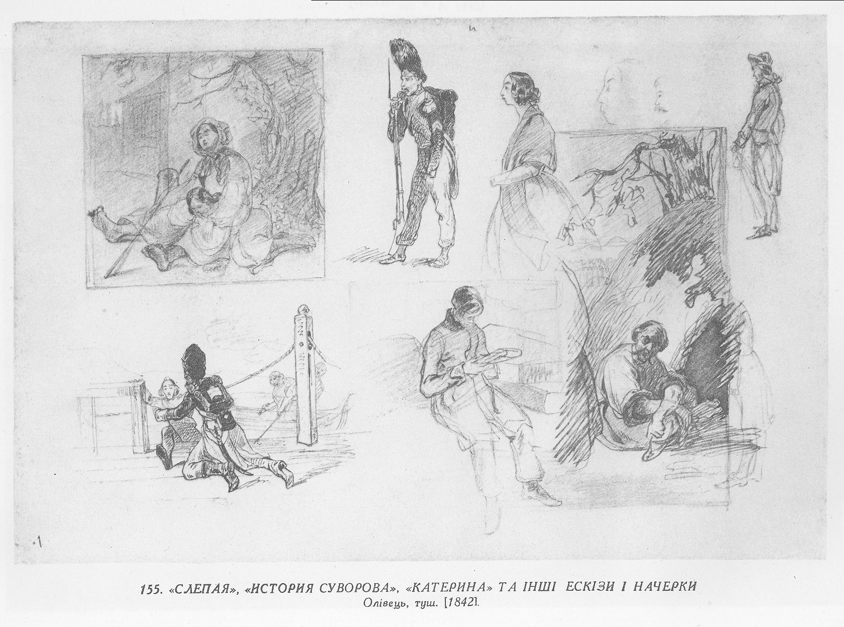 - Живопис, графіка 1857–1861 // Тарас Шевченко. Повне зібрання творів в десяти томах / Корнійчук О. Є.. — К.: Вид-во АН УРСР, 1963. — Т. 10.