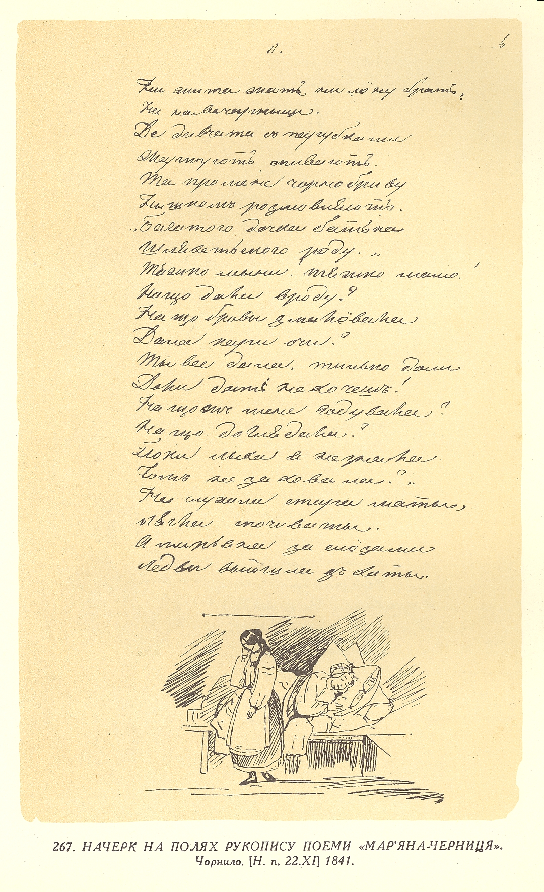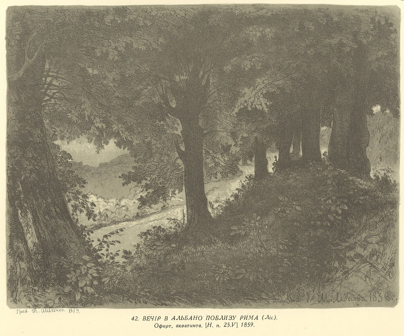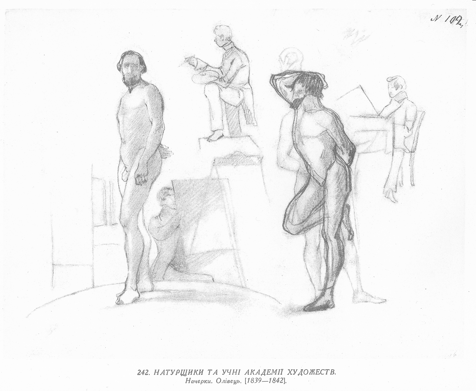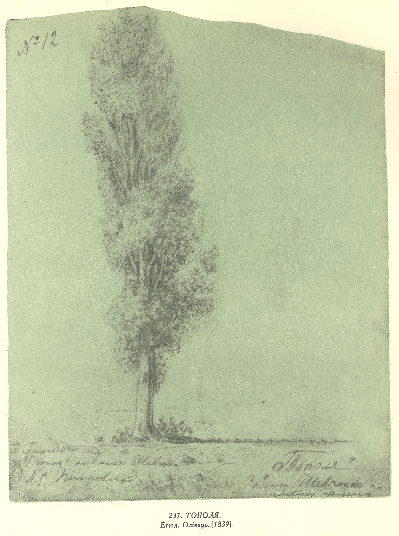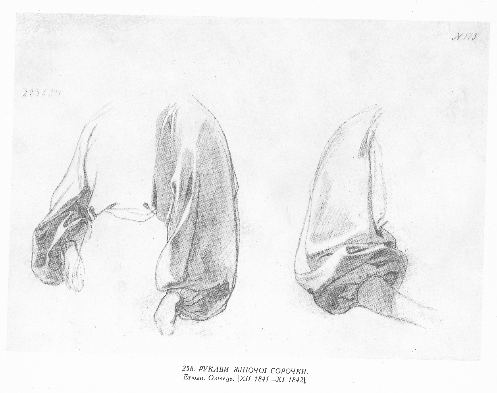 - Живопис, графіка 1857–1861 // Тарас Шевченко. Повне зібрання творів в десяти томах / Корнійчук О. Є.. — К.: Вид-во АН УРСР, 1963. — Т. 10.