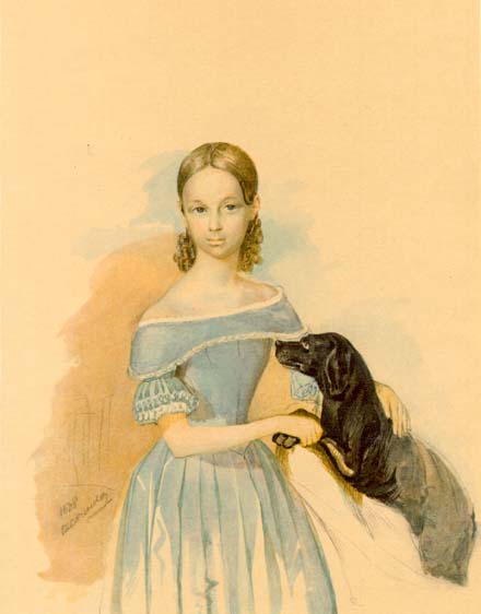 | Портрет девушки с собакой | Бристольский картон, акварель | 24,6×19,4 | 1838 | [14] | |