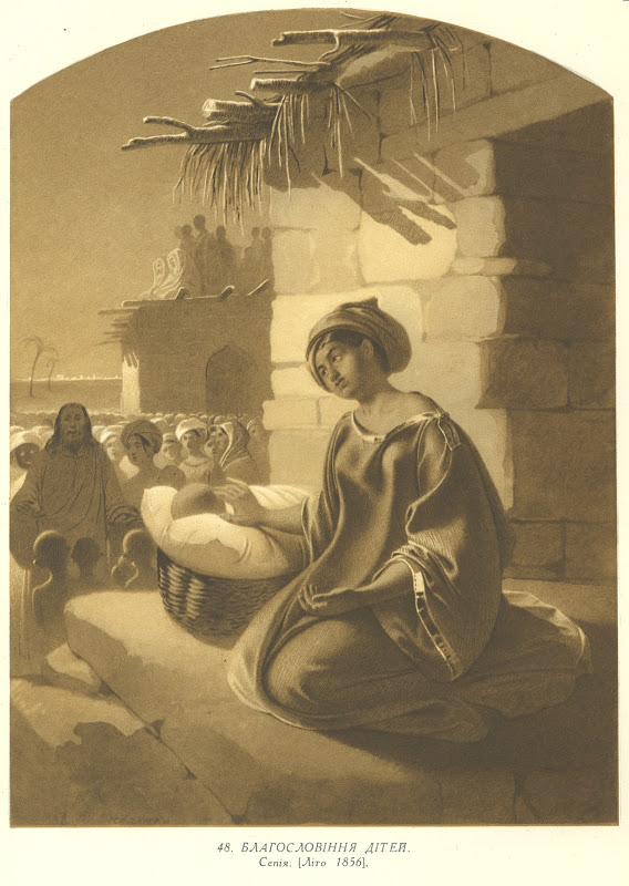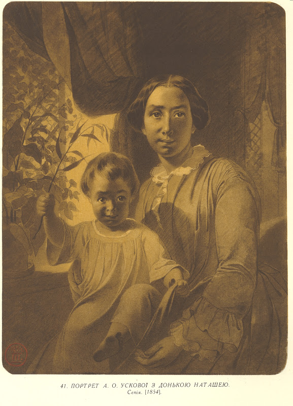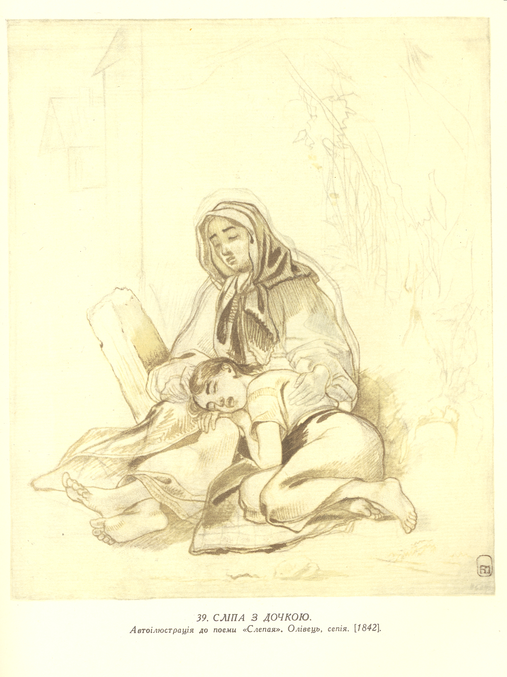 | Слепая с дочкой Автоиллюстрация к поэме «Слепая» |