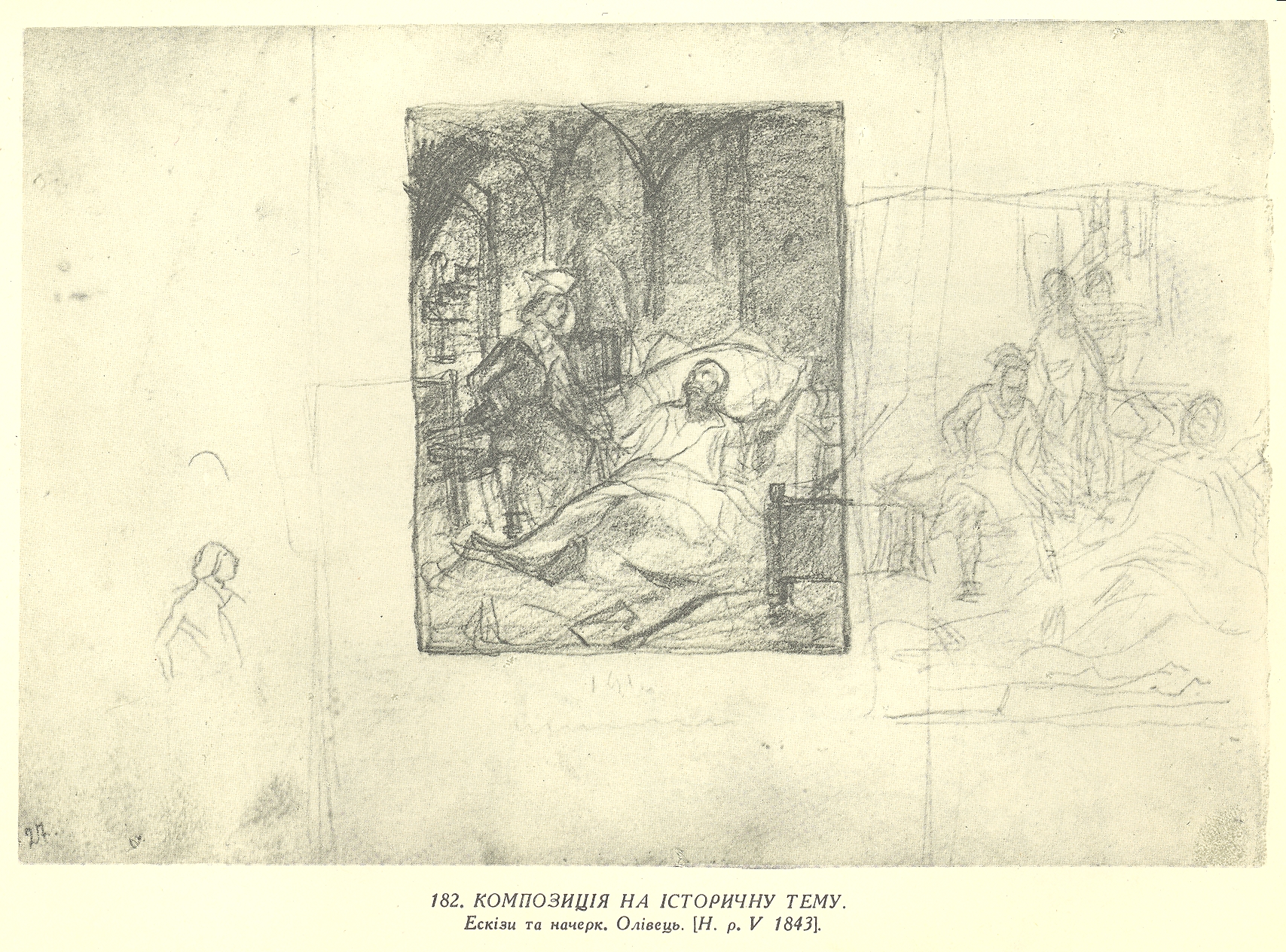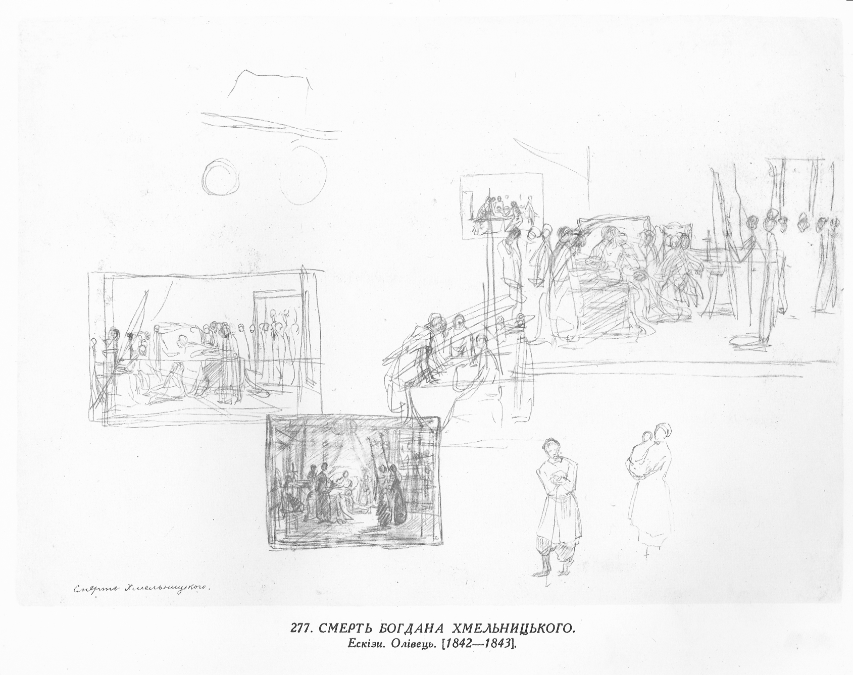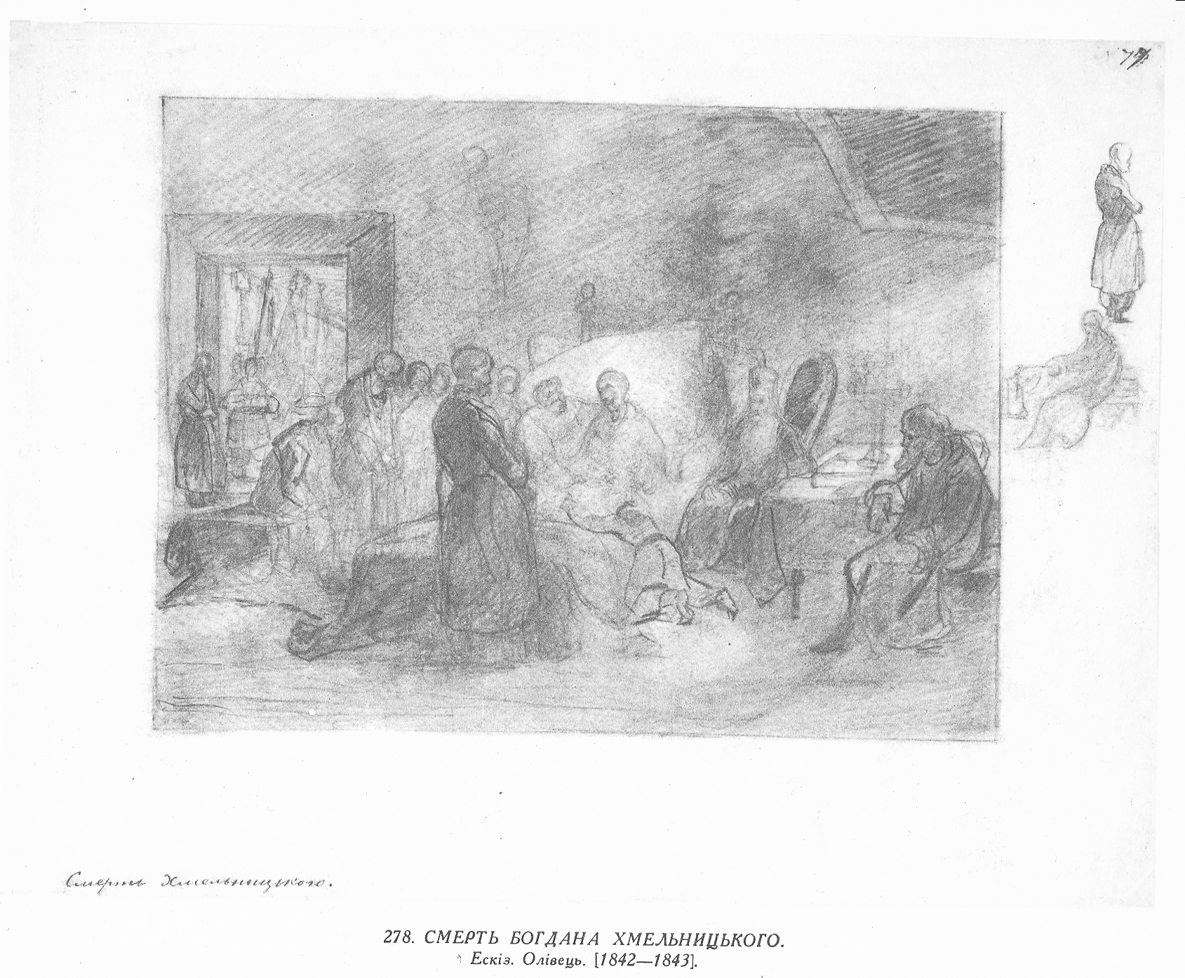 | Смерть Богдана Хмельницкого | Бумага, тушь, кисть, перо | 30,8×45,1 | 1836—1837 | [9] | |