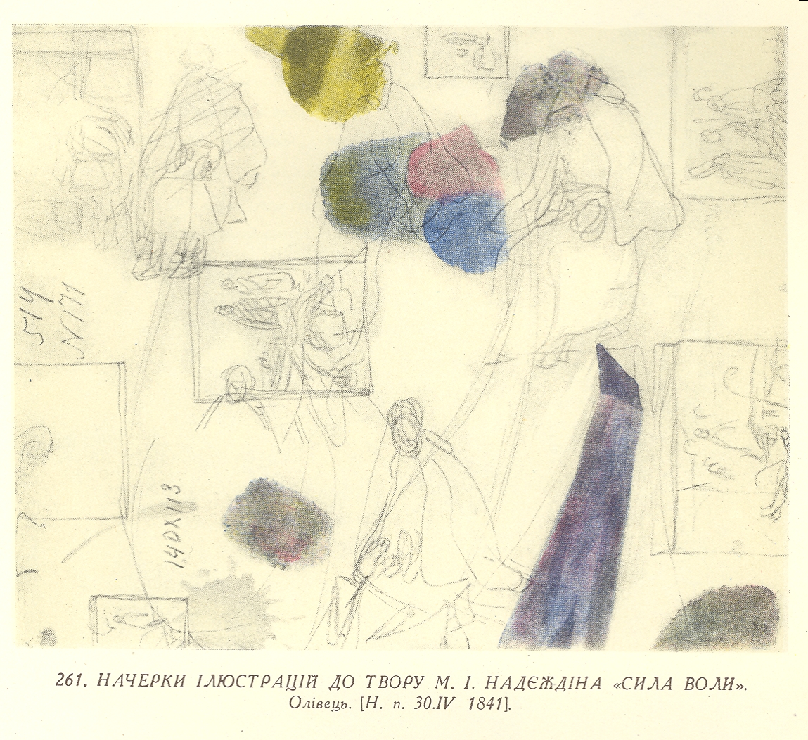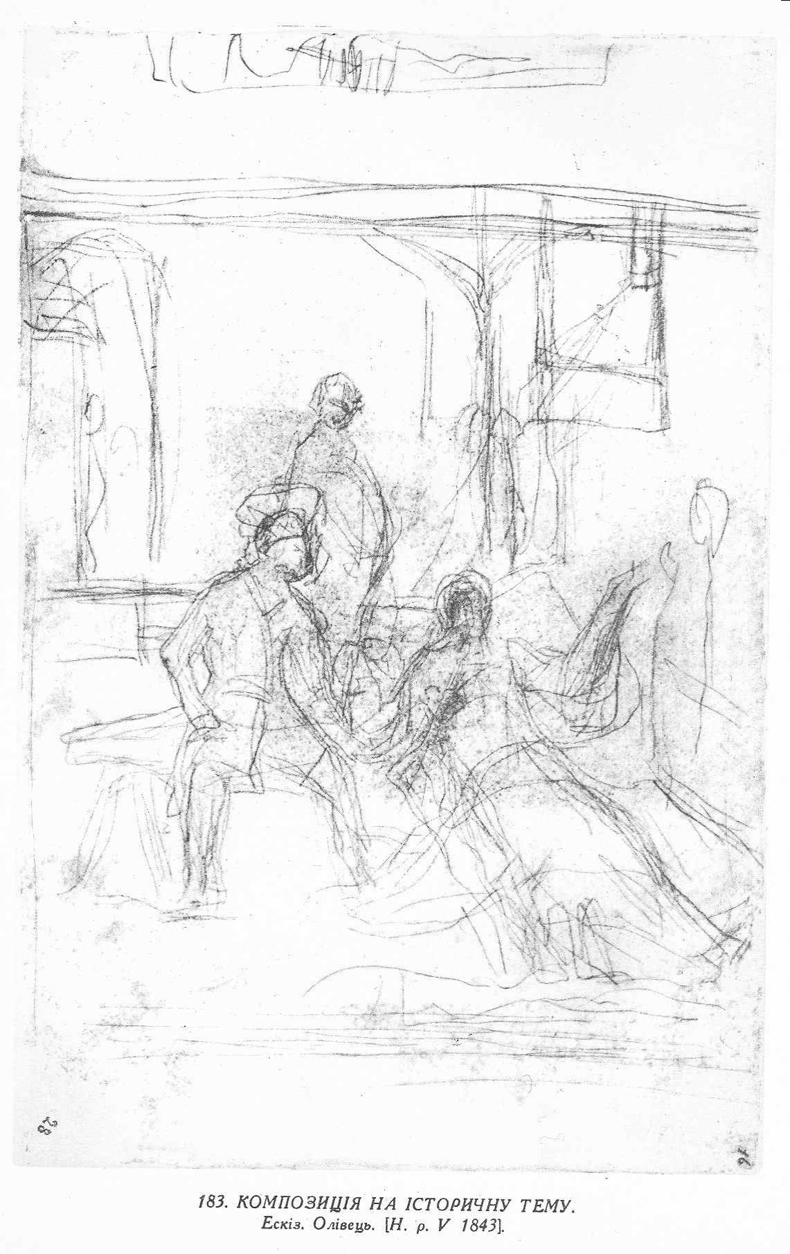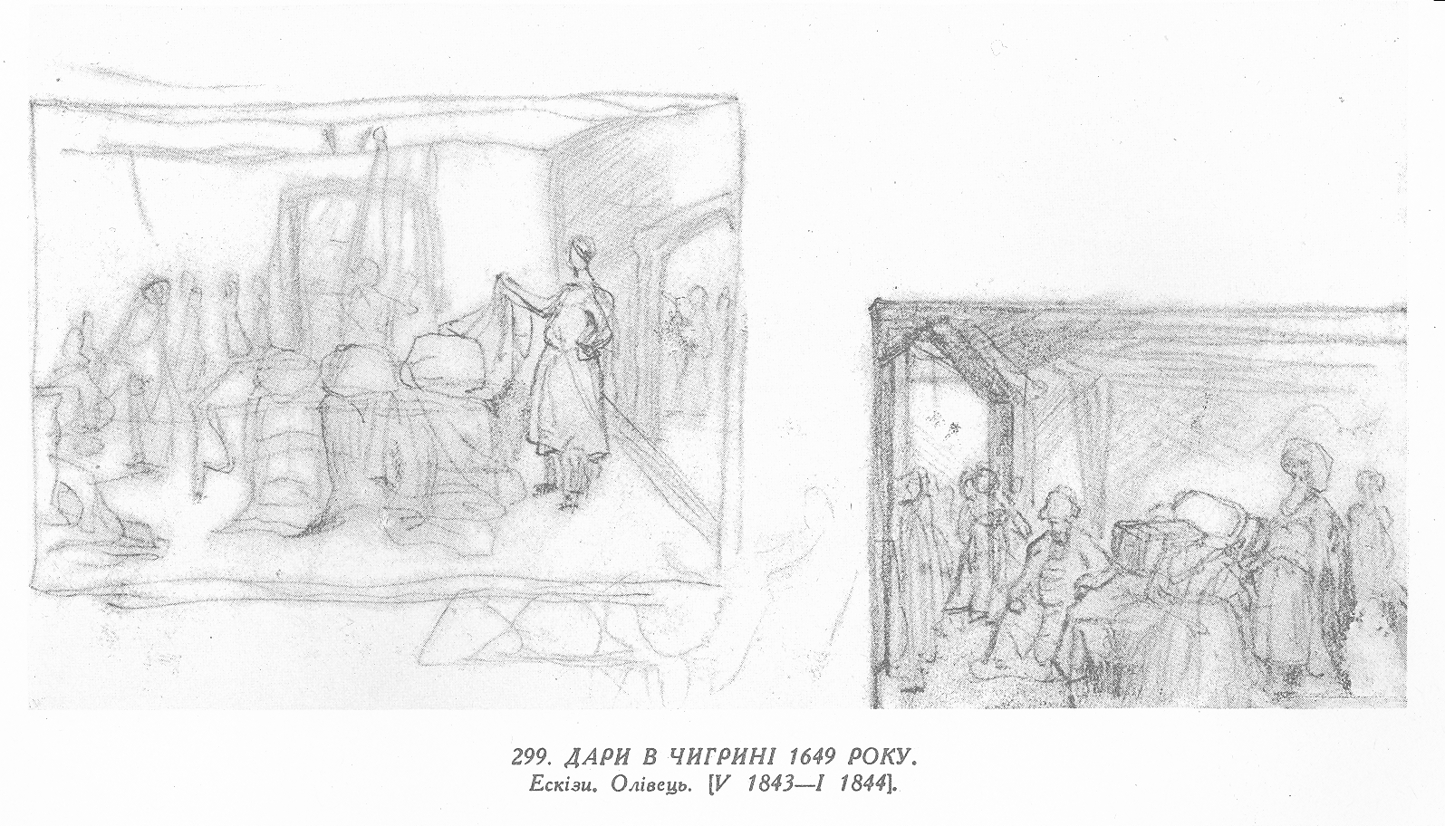 | Смерть Богдана Хмельницкого | Бумага, тушь, кисть, перо | 30,8×45,1 | 1836—1837 | [9] | |