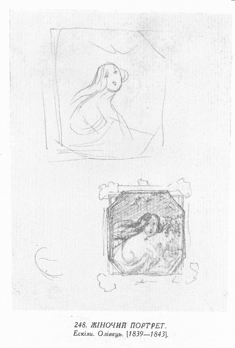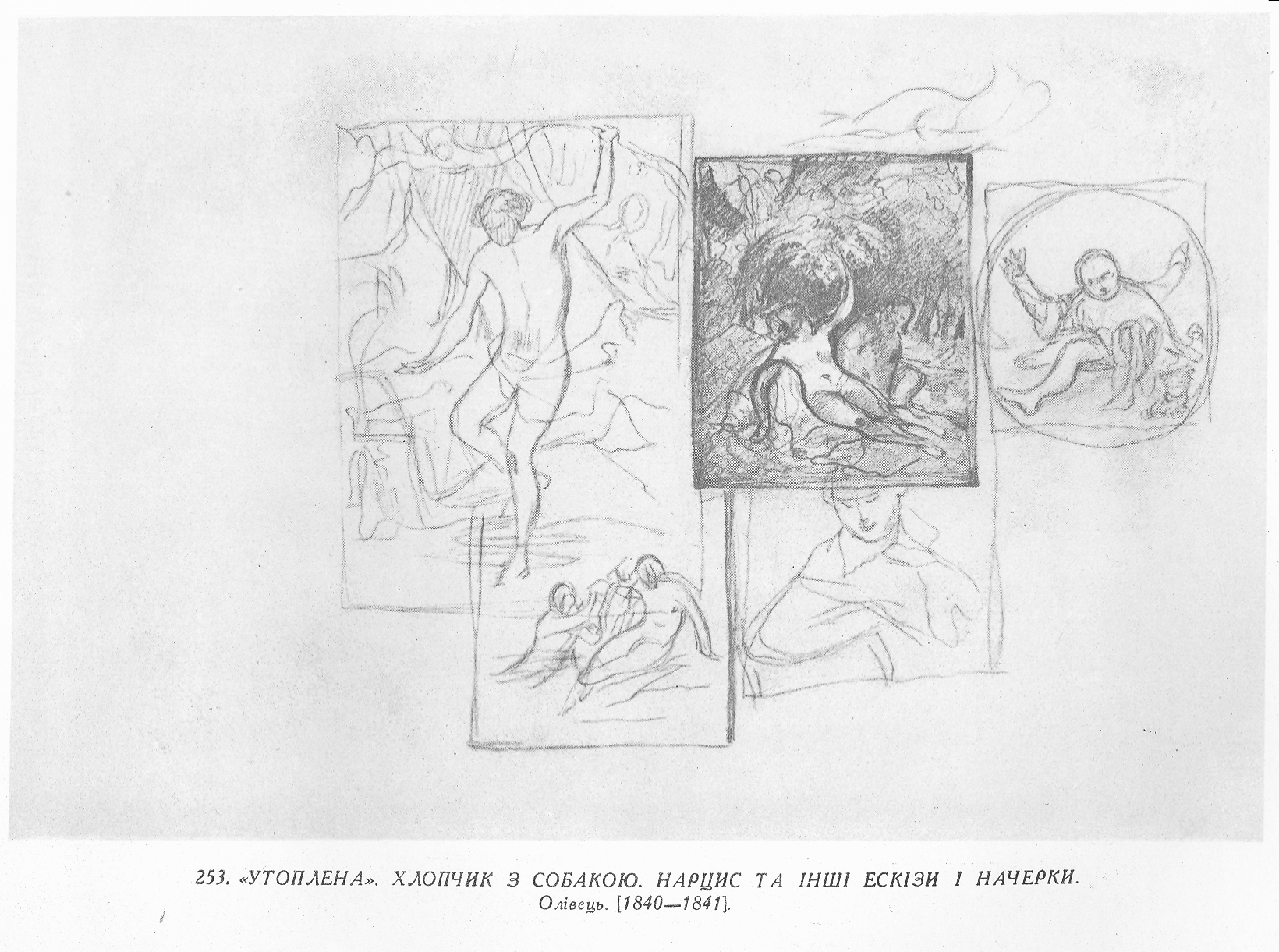 - Живопис, графіка 1851–1857 // Тарас Шевченко. Повне зібрання творів в десяти томах / Корнійчук О. Є.. — К.: Вид-во АН УРСР, 1964. — Т. 9.