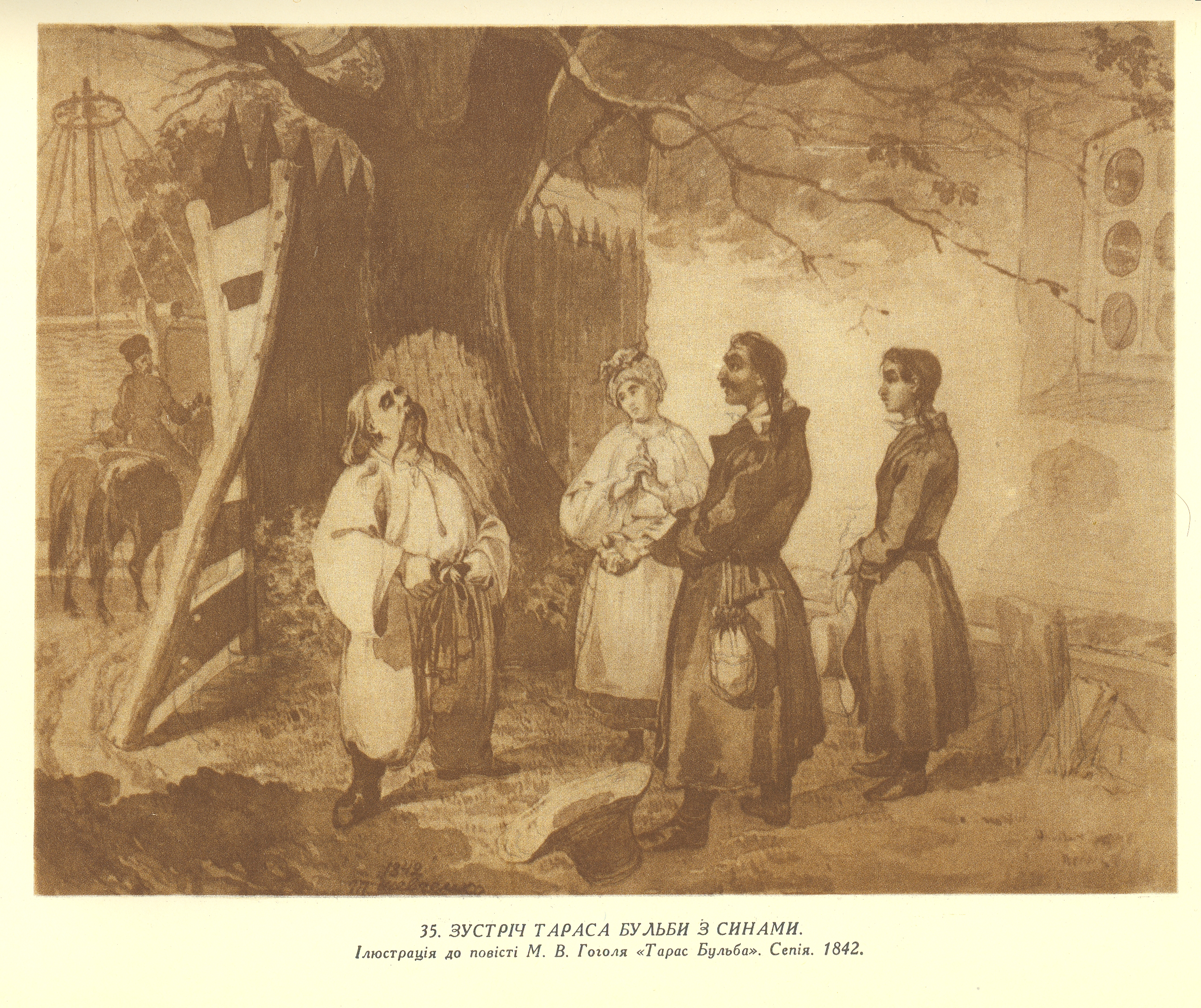 | Встреча Тараса Бульбы с сыновьями Иллюстрация к повести Н. В. Гоголя «Тарас Бульба» |