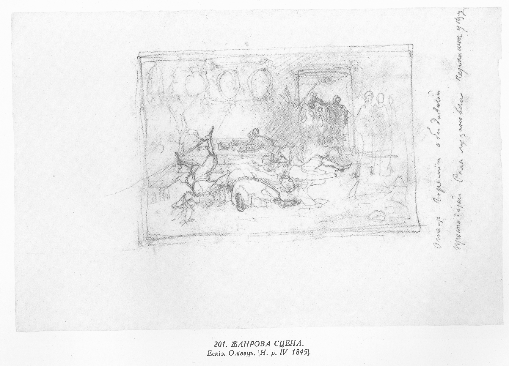 | Казацкий банкет | Бумага, карандаш | 23,3×34 | 25 декабря 1838 | [16] | |