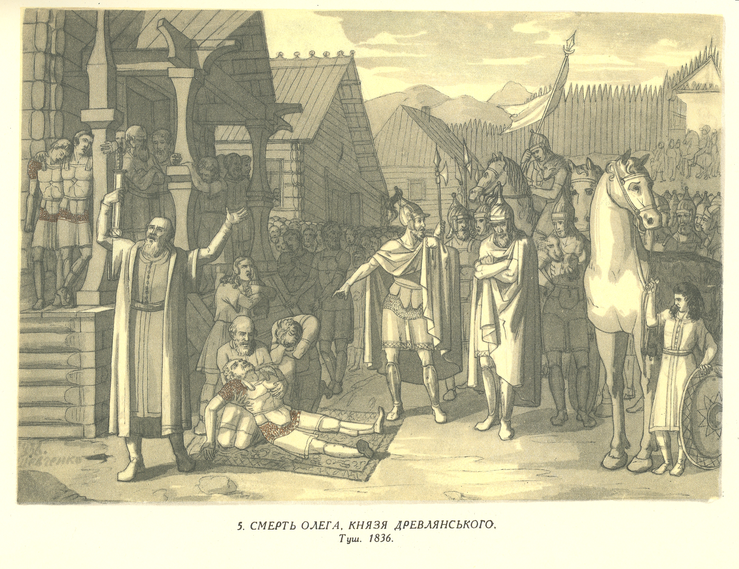 | Смерть Олега, князя древлянского | Бумага, тушь, перо, кисть | 27,5×38,9 | 1836 | [6] | |