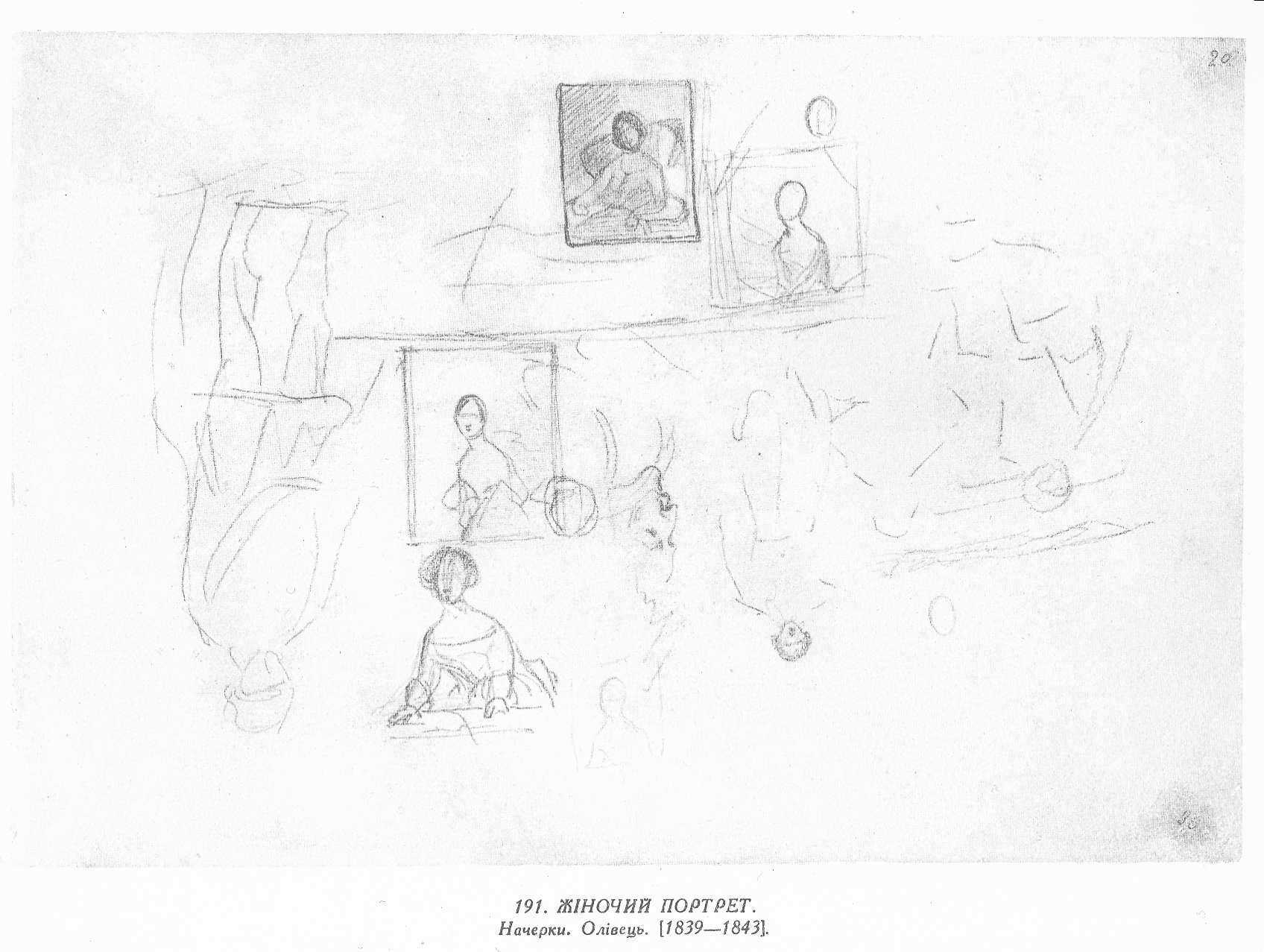 - Живопис, графіка 1830–1847 // Тарас Шевченко. Повне зібрання творів в десяти томах / Корнійчук О. Є.. — К.: Вид-во АН УРСР, 1961. — Т. 7.