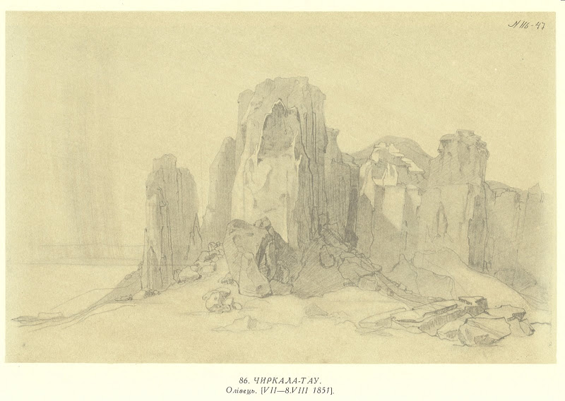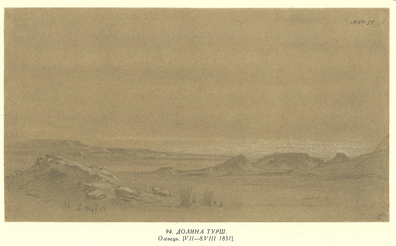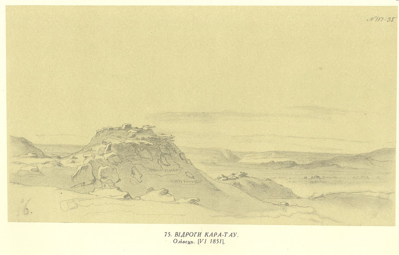| Гористая местность возле Оренбурга. Наброски. | Бумага, карандаш | 21,7×29 | 1857 |