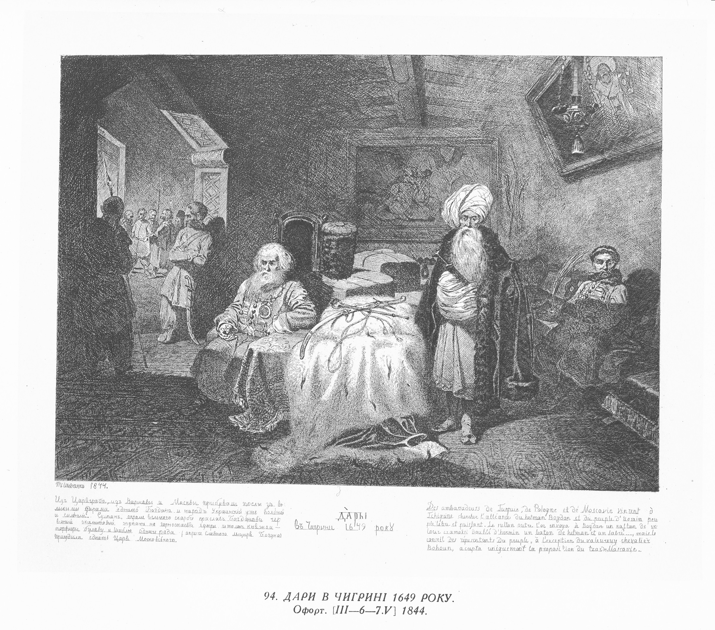| Дары в Чигирине в 1649 году Рисунок к одноимённому офорту |