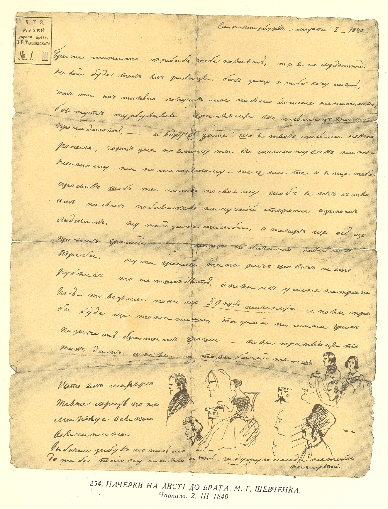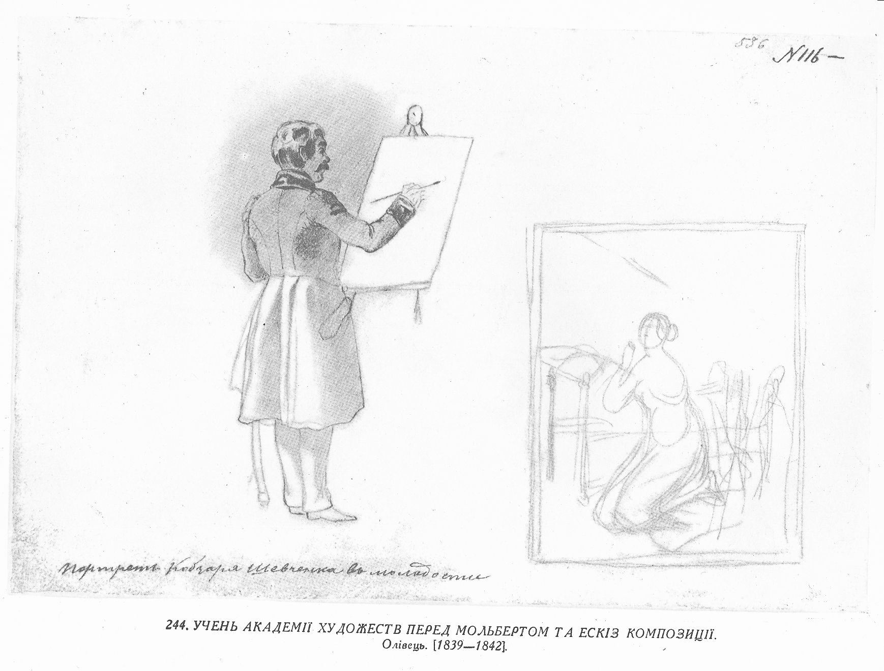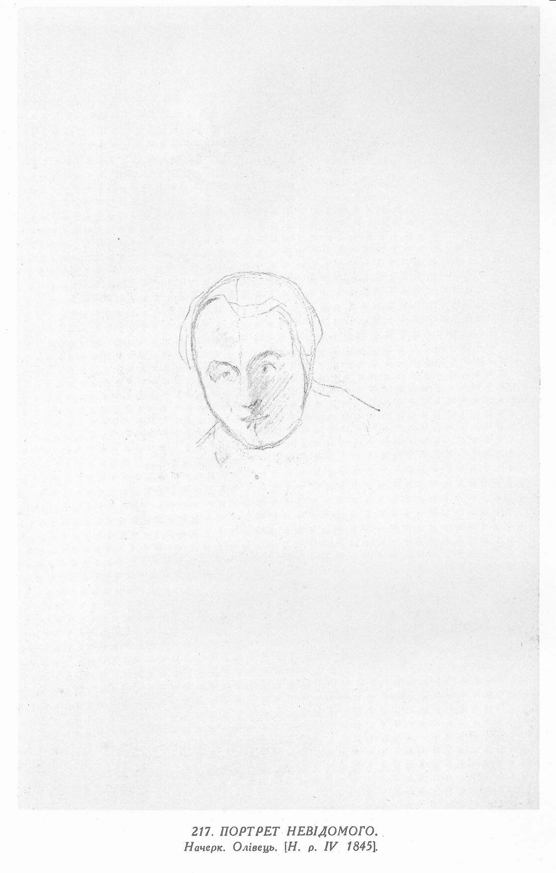 | Портрет Тараса Григорьевича Шевченко. | Бумага, карандаш | 12,4×9,8 | — |