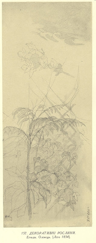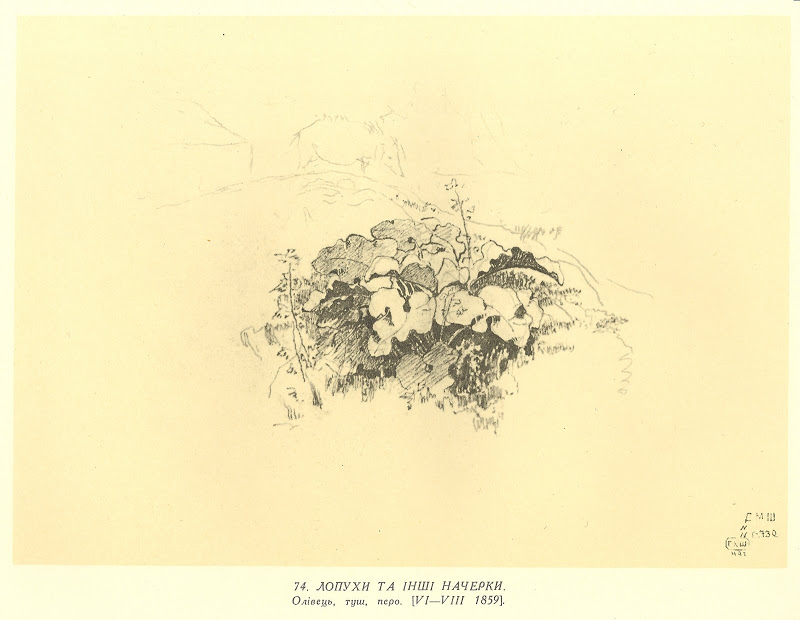 | Портрет Тараса Григорьевича Шевченко в профиль. | Бумага, тушь, перо | 20,7×16,7 | — |