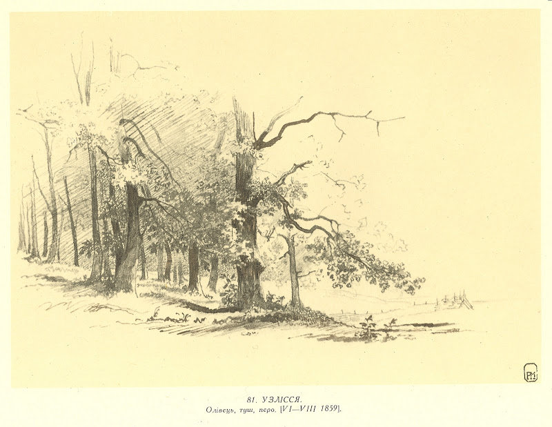 | Шлях около Киева. | Бумага, тушь, карандаш | 14,5×22 | — |