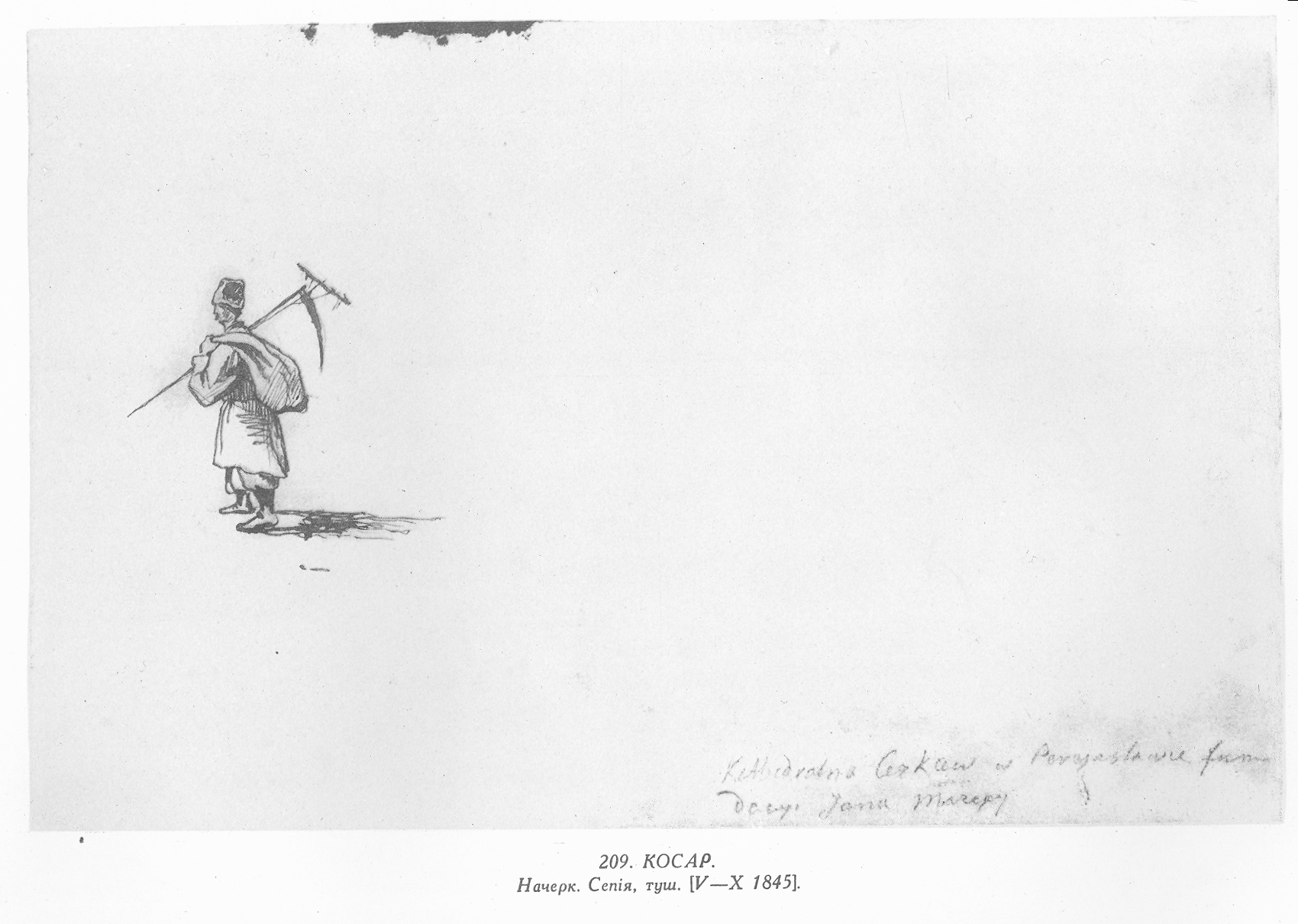| Портрет Тараса Григорьевича Шевченко и неизвестного. | Бумага, тушь, перо | 15,4×22,4 | — |