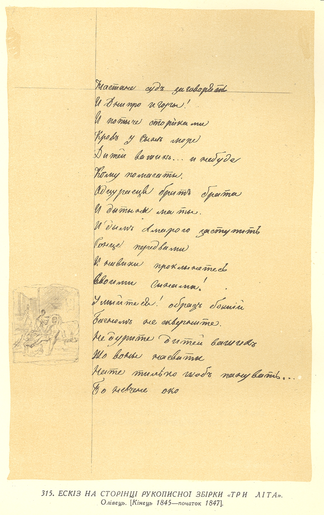 - Живопис, графіка 1847–1850 // Тарас Шевченко. Повне зібрання творів в десяти томах / Корнійчук О. Є.. — К.: Вид-во АН УРСР, 1963. — Т. 8.