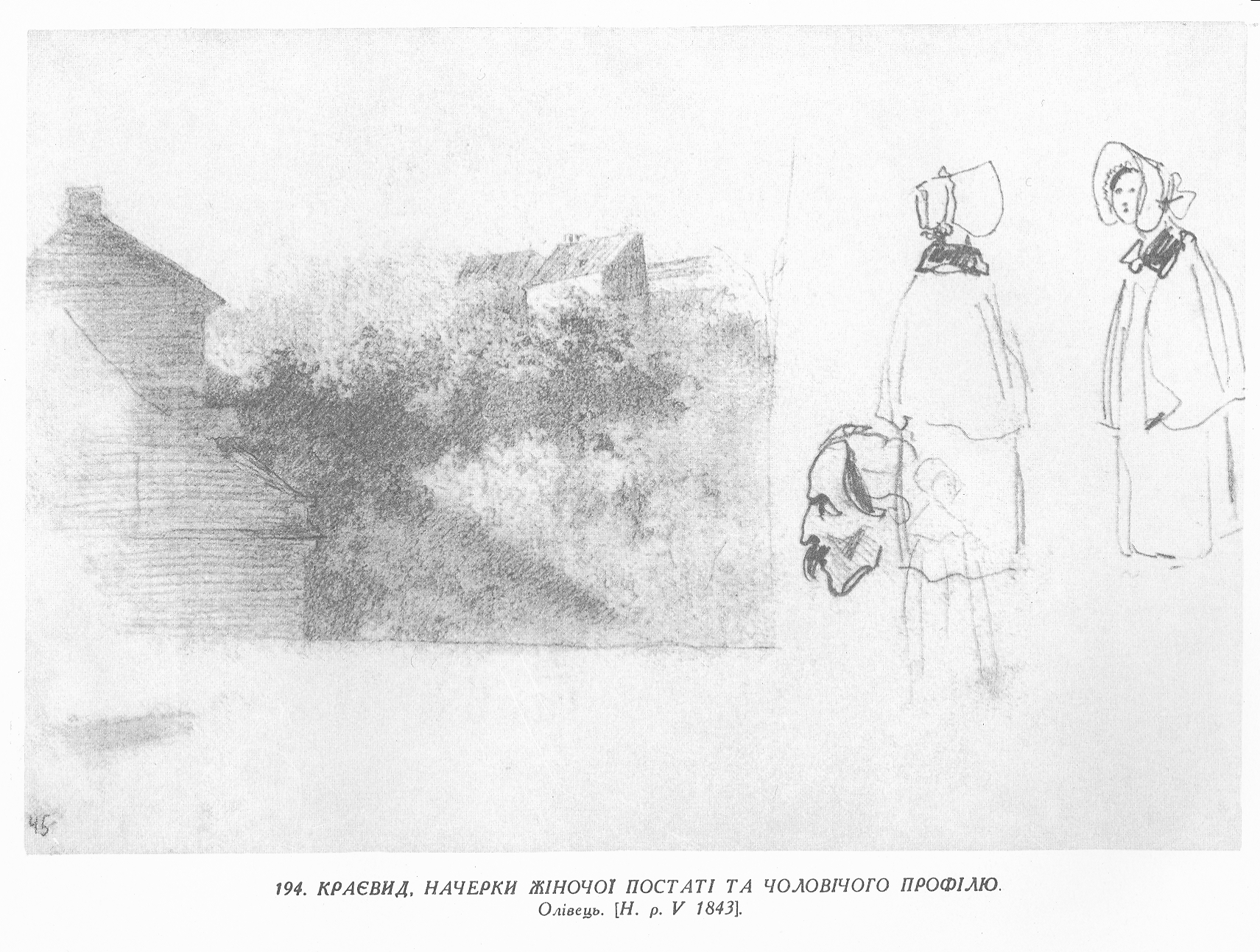 | Вдовья хата на Украине | Бумага, карандаш | 22,7×29,5 | май — октябрь 1843 | [54] | |