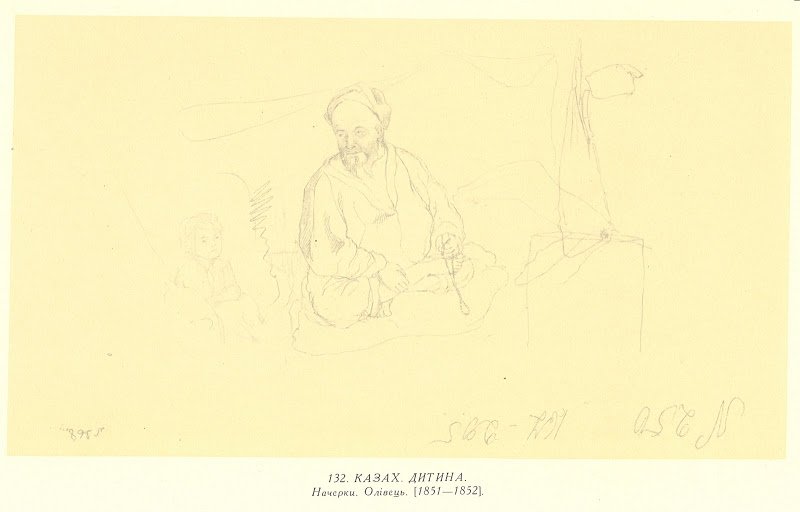 | Казахи возле юрты. | Бумага, карандаш | 13,9×22,9 | — |