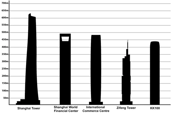 В последние годы в Китае строят более 100 небоскрёбов в год, на 2017 год намечен ввод в эксплуатацию порядка 120 небоскрёбов. Таким образом, более 1200 небоскрёбов будут построены только в течение 15 лет.