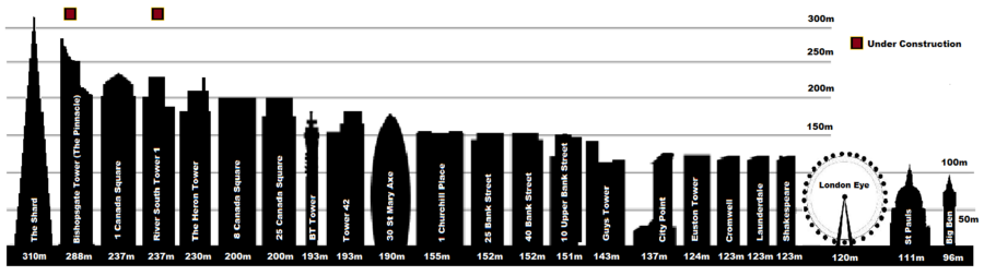 После строительства небоскрёбов в Кэнэри-Уорф и при содействии бывшего мэра Лондона Кена Ливингстона, в городе появилась тенденция к строительству высотных зданий. Так, в марте 2012 года был подведён под крышу Shard London Bridge, а также ведётся строительство ещё 5 сооружений высотой более 100 метров. Планируется, что 288-метровый Pinnacle станет центральным сооружением Сити.