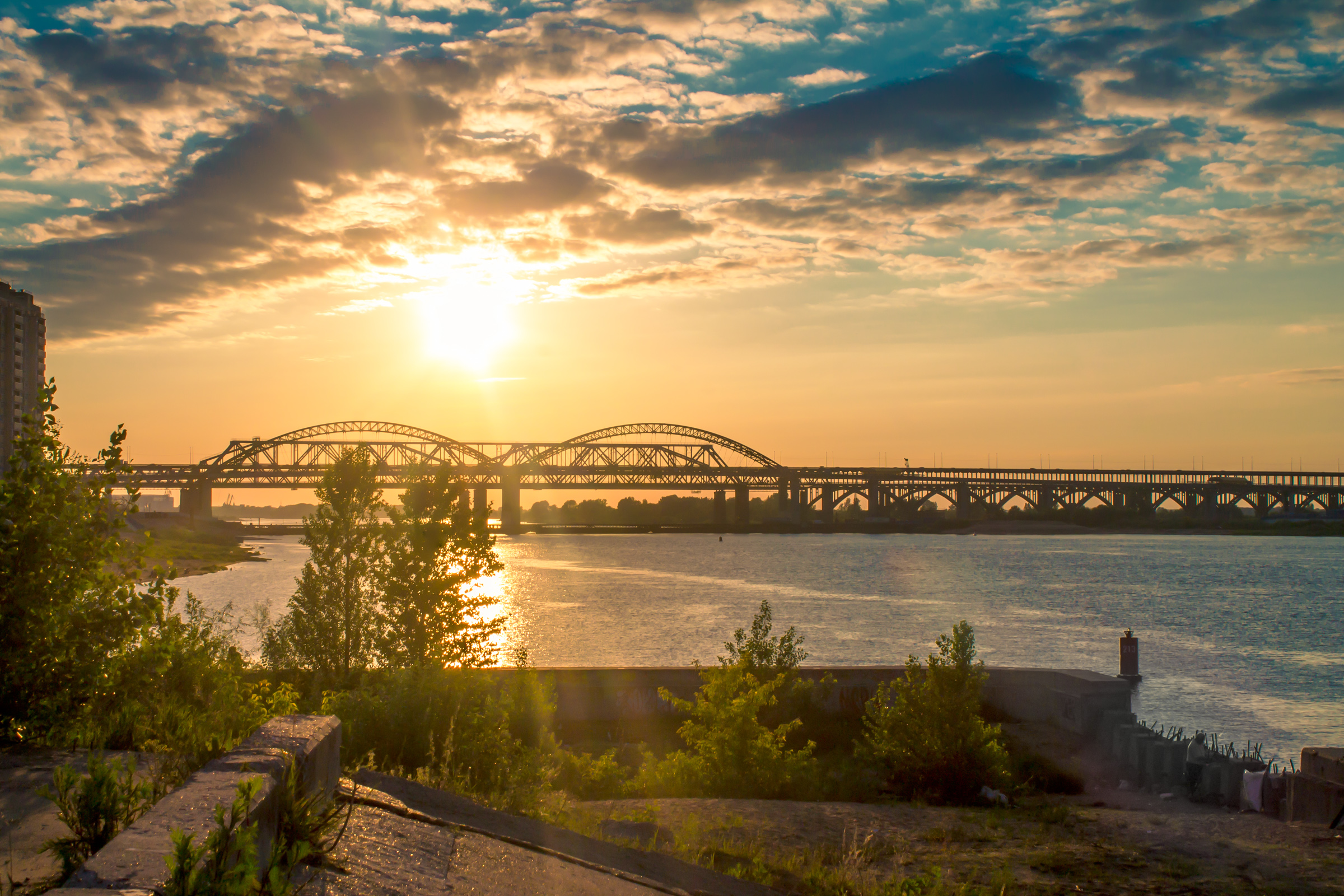 Архангельск | Автомобильный, железнодорожный и пешеходный мост в городе Архангельске. | ||