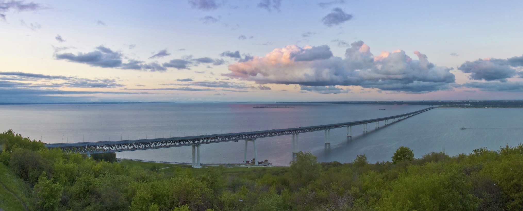 | 34 | 1608 | Мост через Каму | 2002 | 2 полосы | Татарстан | Строительство моста началось в 1992 году. Официальное открытие первой очереди состоялось 18 октября 2002 года. Вторая очередь была открыта 30 августа 2016 года. | ||
