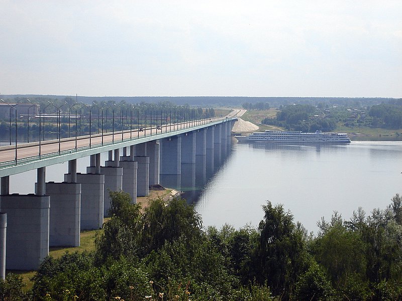 | 29 | 1646 | Кинешемский мост | 2003 | 4 полосы | Кинешма | Мост начал строиться в 1984 году как совмещённый (двухъярусный) автомобильно-железнодорожный, достроен по изменённому проекту как автомобильный. | ||