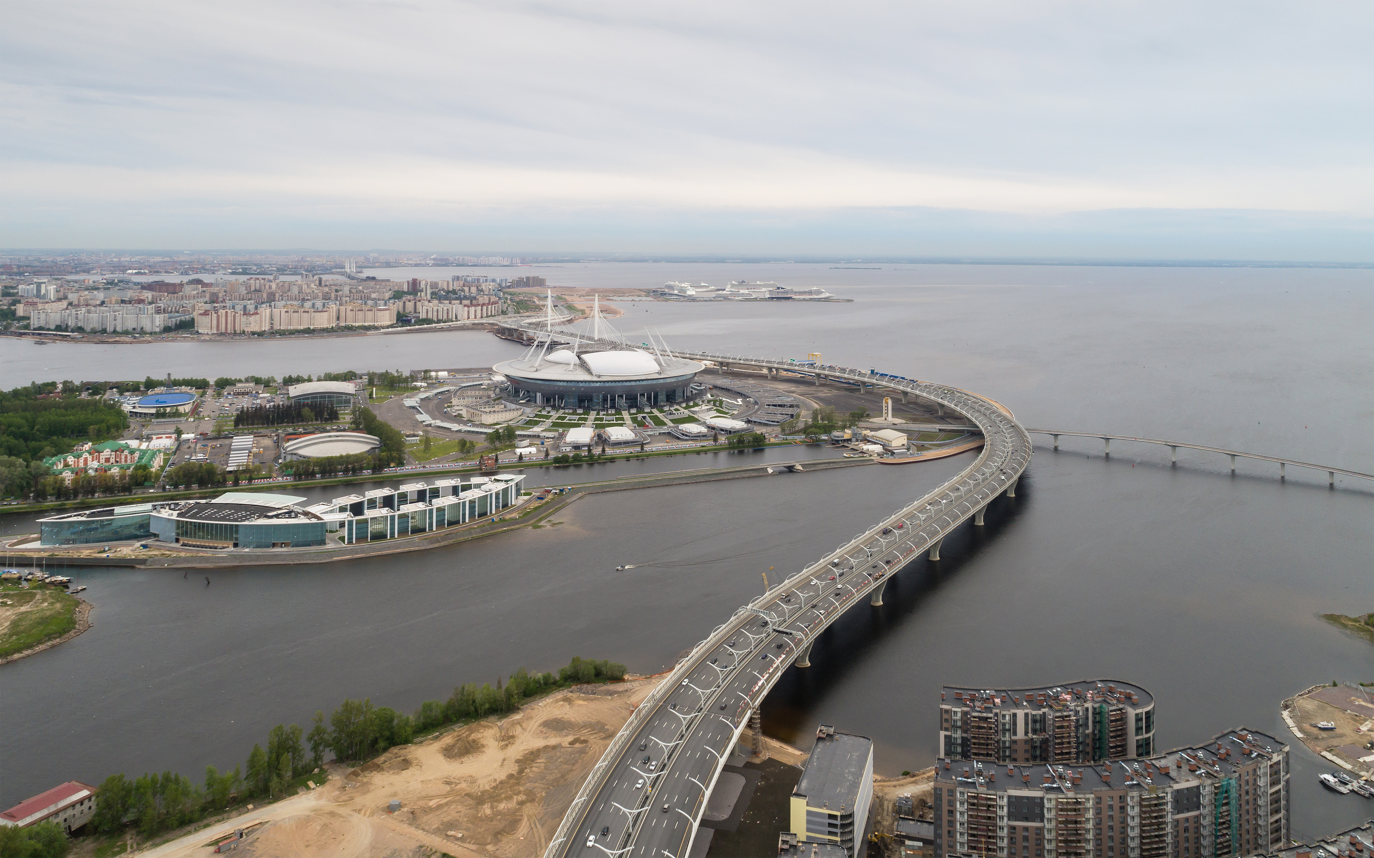 | 2 | 9378 [4][5] | Южная эстакада Западного скоростного диаметра | 2016 | 8 полос | Санкт-Петербург | Включает в себя двухэтажный мост через Морской канал (734 м) и вантовый мост через Корабельный фарватер (622 м). | ||