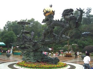 Согласно другому мифу, солнечное затмение было вызвано тем, что волшебная собака или дракон откусил кусок Солнца. Согласно легенде, это событие произошло около 2136 года до н. э.; два королевских астронома, Хо и Хи, были казнены за то, что не смогли предсказать затмение. В Китае существовала традиция издавать много громких праздничных звуков во время солнечного затмения, чтобы отпугнуть священного зверя[33].