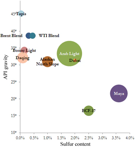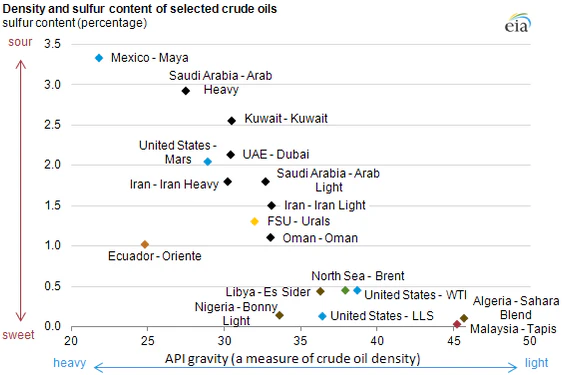 | West Texas Intermediate | 39.6° | 0.24% | United States | Cushing, Oklahoma | |