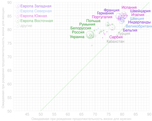 | Страны | Общая | М | Ж | ЖΔМ | Δ 2014 |