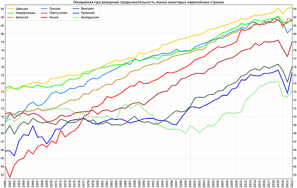 Ожидаемая продолжительность жизни при рождении в 2019 году согласно данным Группы Всемирного банка[1][2][3].