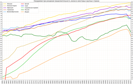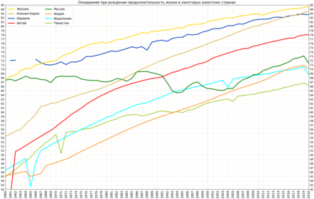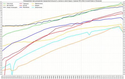 - ↑ Life expectancy at birth, female (англ.). Группа Всемирного банка (29 июня 2023). Дата обращения: 6 июля 2023. Архивировано 12 марта 2021 года.