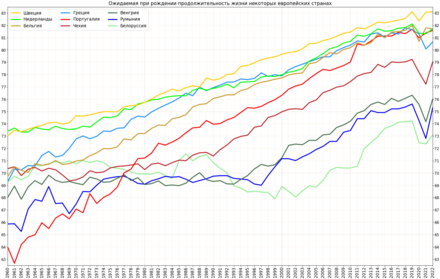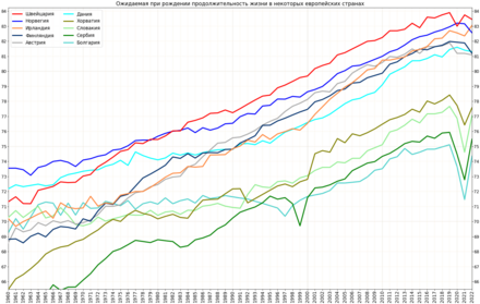 - ↑ OECD Data: Life expectancy at birth (англ.). Организация экономического сотрудничества и развития (17 декабря 2023).