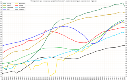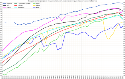 - ↑ Life expectancy at birth, total (англ.). Группа Всемирного банка (29 июня 2023). Дата обращения: 6 июля 2023. Архивировано 2 февраля 2021 года.