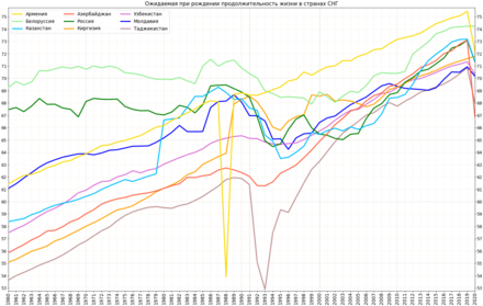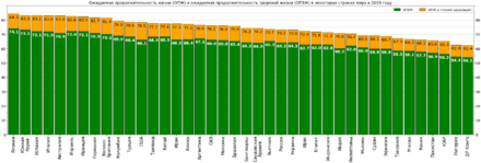 - ↑ Life expectancy and Healthy life expectancy, data by country (англ.). Всемирная организация здравоохранения (2020). Дата обращения: 28 февраля 2021. Архивировано 5 марта 2013 года.
