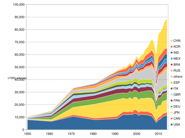Таблица государств отсортирована по количеству выпускаемых автомобильной промышленностью автомобилей в тысячах единиц, в порядке убывания.