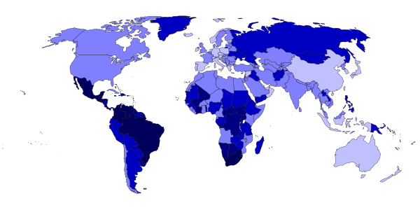 В данном разделе представлена сводная информация на основе отчёта УНП ООН, опубликованного 19 мая 2017 года[4], который включает в себя статистику за 2000—2016 годы. В таблице ниже приведены данные для каждой из стран по последнему году, доступному в отчёте, а также информация отдельно по полам, если таковая имеется на этот год.