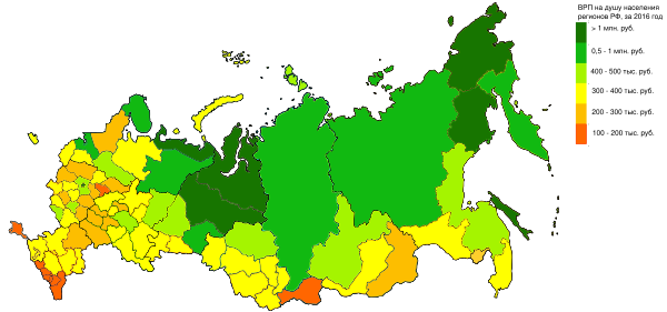 - Валовый внутренний продукт (ВВП) российских регионов в пересчёте на одного жителя, в USD.