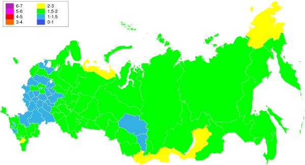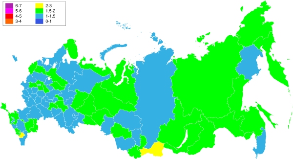 | Сибирский федеральный округ | 1.86 | ↗1.88 | ↗1.90 | ▬1.90 | ↘1.87 | ↘1.72 | ↘1.64 | ↘1.54 | ↘1.52 | ▬1.52 |