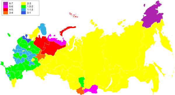 | Таймырский (Долгано-Ненецкий) автономный округ | 1.88 | 1.79 | 1.66 | 1.50 | 1.49 | 1.57 | 1.44 | 1.46 | 1.78 | 1.90 | 1.955 | 2.001 | 1.731 | 1.727 | 1.934 | 1.98 | 2.115 |
