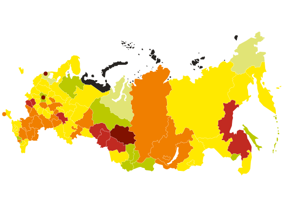 | 84 | Чукотский автономный округ | 460 | 2 | 0,9 |